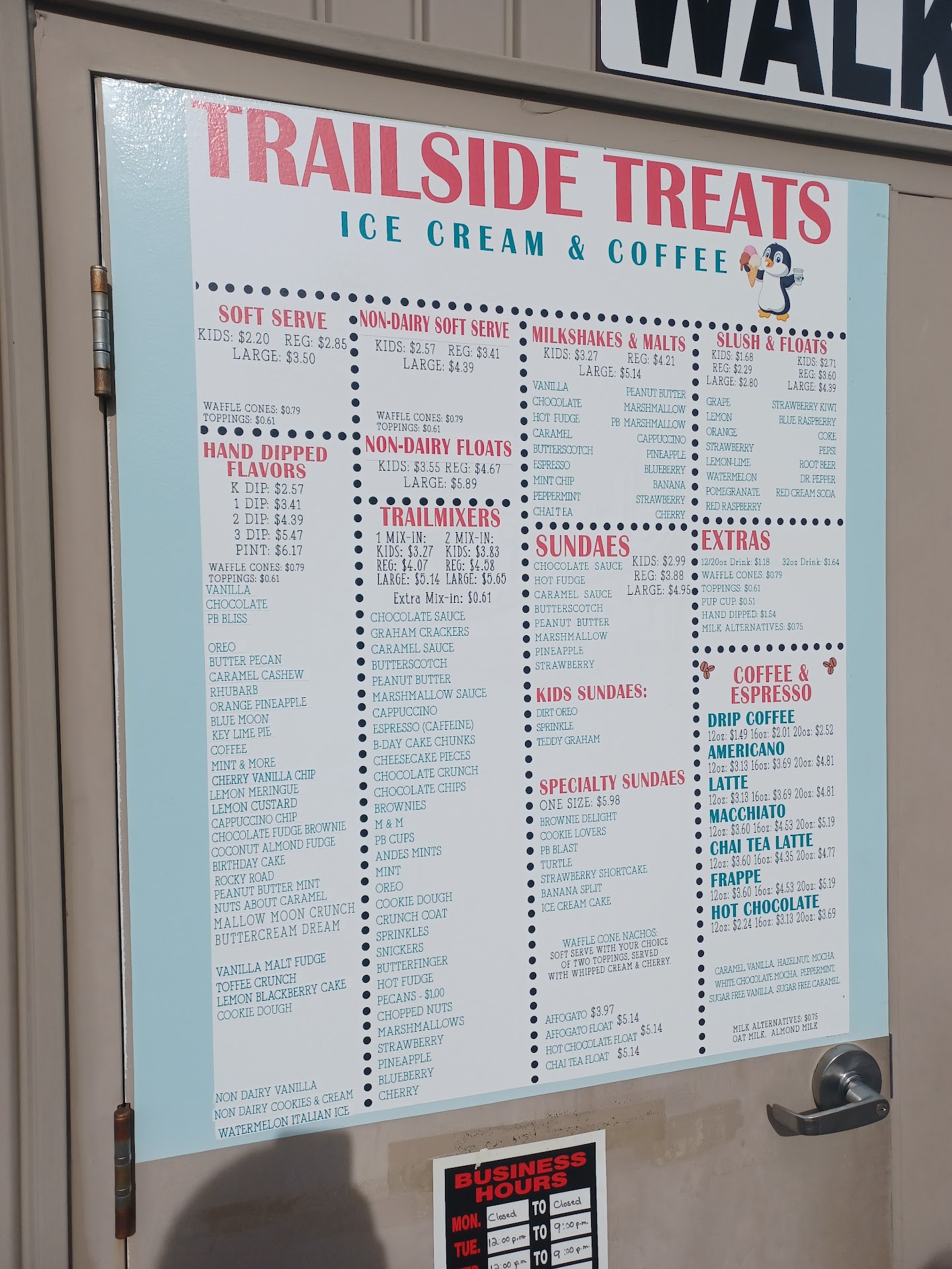 Delicious!!!! They spare none, either. A $6 sundae is a generous portion. The brownie sundae has the best brownies I've ever had in a sundae without it being out of my own kitchen! Keep up the great work! If I had one suggestion, it would be to open at 11 am. We ride our bikes from Marion, and by waiting until noon to arrive at Trailside Treats, we start getting into the heat of the day and question whether or not we can make it back home on our bikes after...