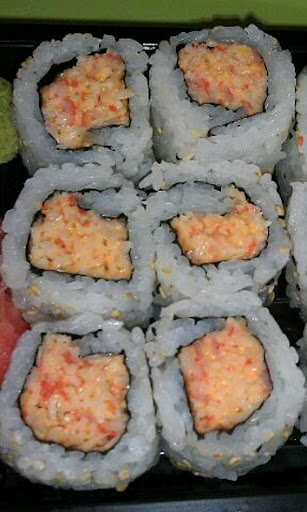 We ordered three or four rolls, I know for a fact that one of them was tuna and another was supposed to be salmon. However when the sushi came out there was litteraly no fish on my sushi! I'm not joking, I really wish I was. All three or four rolls, no actual fish. They all had a "sea food mix" on them; you know the pinkish-orange colored pasty pate type of stuff that's is some times put on top of sushi. The best way I can describe the look of it is it was kind of similarly to what a crab roll looks like. (I'll attach a picture of a crab roll just for a visual.) All of the sushi's had the exact same mix on them! Even though each one was "supposedly" a completely different sushi with completely different fish on them. While it had a similar appearance and consistency of crab salad, that's were the similarities stop, because crab salad is delicious and what ever this stuff was was anything but. It was overpoweringly salty and pungent. I could compare the flavor to a few very distasteful things but I'm sure you can imagine without the details.