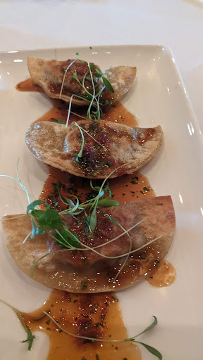 As an appetizer, I started w/ the filet mignon potstickers. I can see why they are a signature item. They were delicious. I also had the king crab and corn bisque. The sweetness from the crab and the corn balanced well w/ the creaminess of the bisque. For me, it was one of the best Iâve had. I also decided to go w/ the Filet del Mar. I have to say, that was one of the best cooked steaks I have had in a very long time. For a medium well temp, it was still tender and flavorful. Although it stood on its own, one of the many enhancements (offered for an additional charge), would not have hurt the steak at all. The potatoes were really good, nice and creamy. The sausage was good as well, however, the shrimp unfortunately was lacking. For it to be blackened, I was not getting a lot of that flavor and they also were not hot enough, temperature wise. As a side (all sides are ala cart), I got the brussel sprouts w/ bacon. They did not rank high. For me, they were not roasted enough. Seemed more steamed than roasted. Friend one felt that they were perhaps cooked too quickly so that they were not roasted properly.