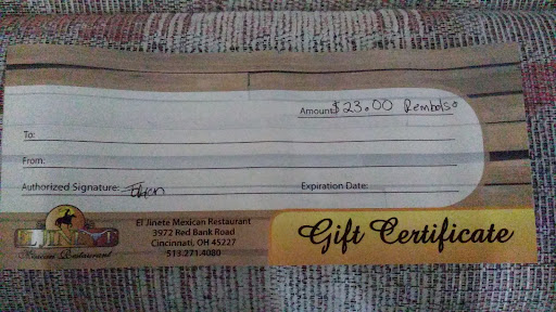El Jinete is a great Mexican restaurant. We were greeted immediately upon entering and seated quickly. The server was very friendly and quick to get us our drinks. Watch out, the frozen margaritas really pack a punch! There's several sizes of margarita so you don't HAVE to buy a giant drink, which is nice. We ordered fajitas to share (2ppl) and were given the option of flour or corn tortillas. Chips and salsa were available to snack on while we waited. When the food arrived it was a huge portion, so much so that after we ate our fill, there was enough for lunch for both of us the next day. This place is super clean, super friendly and really good food. This is the perfect date night, birthday dinner or even family dinner location. I've brought my children here during the day for a lunch meeting and the waitresses talked to the kids making sure they were happy. The manager even allowed me to bring in a Happy meal from a place next door for my picky eater. That was super nice and made my life easier!! (I asked BEFORE...
