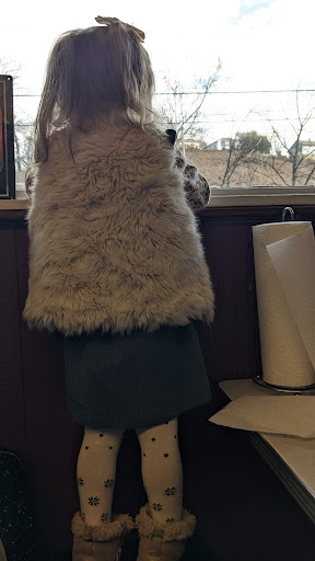 I sat at the counter which was cluttered with all of their set up items (glassware, silverware, saucers, creamers, etc). It just makes it look unkempt.