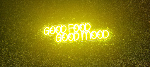 The atmosphere is pretty cool. A large graffiti mural on one wall and fake grass with neon words on the other. Bright colors and quite clean.