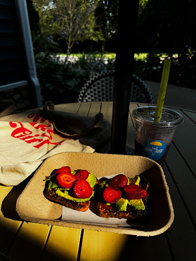 My new favorite place to be! Staff is super nice. Everything on the menu here is so good, I'm obsessed with the PB protein smoothie with cacao powder. I love the focus on organic ingredients and having gluten free options. They even use organic syrups for their coffee, coffee from here was the first time I felt all the positives from coffee without the negatives. They have a great outdoor area to work that's super comfortable. You can tell the inside was so thoughtfully designed. They have power outlets by all of the tables inside, making it the perfect workspace. Bathroom is also super clean...