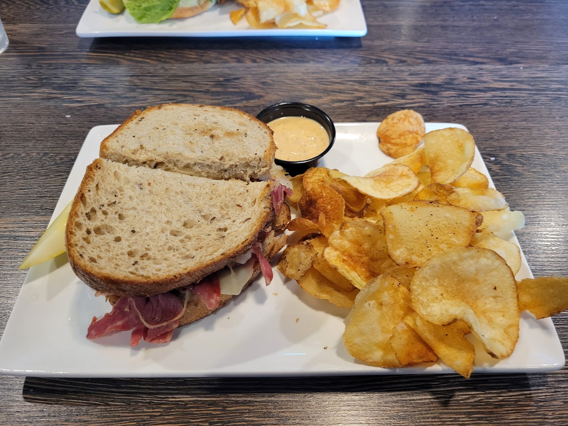 Read moreI wasn’t sure what kind of restaurant this was but it’s close to my house so I decided to check it out. My husband and I went on a Friday night with our 7 year old. The server apologized because several items were not available due to having run out. (There were 10 items crossed out on the menu.) I asked for iced tea but they were out of that as well. I then asked if they had a kids menu and was told that they will be getting one soon. The only thing on the menu that my son would eat was the burger and I didn’t want to buy him his own $9 half pound burger so we split it. I normally would not have chosen a burger but it was juicy and delicious with fresh toppings. The chips were nice and crispy but way too salty. My husband got the burger too and he also enjoyed it (despite agreeing about the salty chips). The servers were very friendly and attentive and 2 different people came to take our drink order and then check in on us. The rest of the menu looked interesting and I would like to try some of the other sandwiches if I go back without my son. I gave them 4 stars because the food was mostly good and everyone was very nice. I’m guessing it will be better as they work out the kinks of having a...