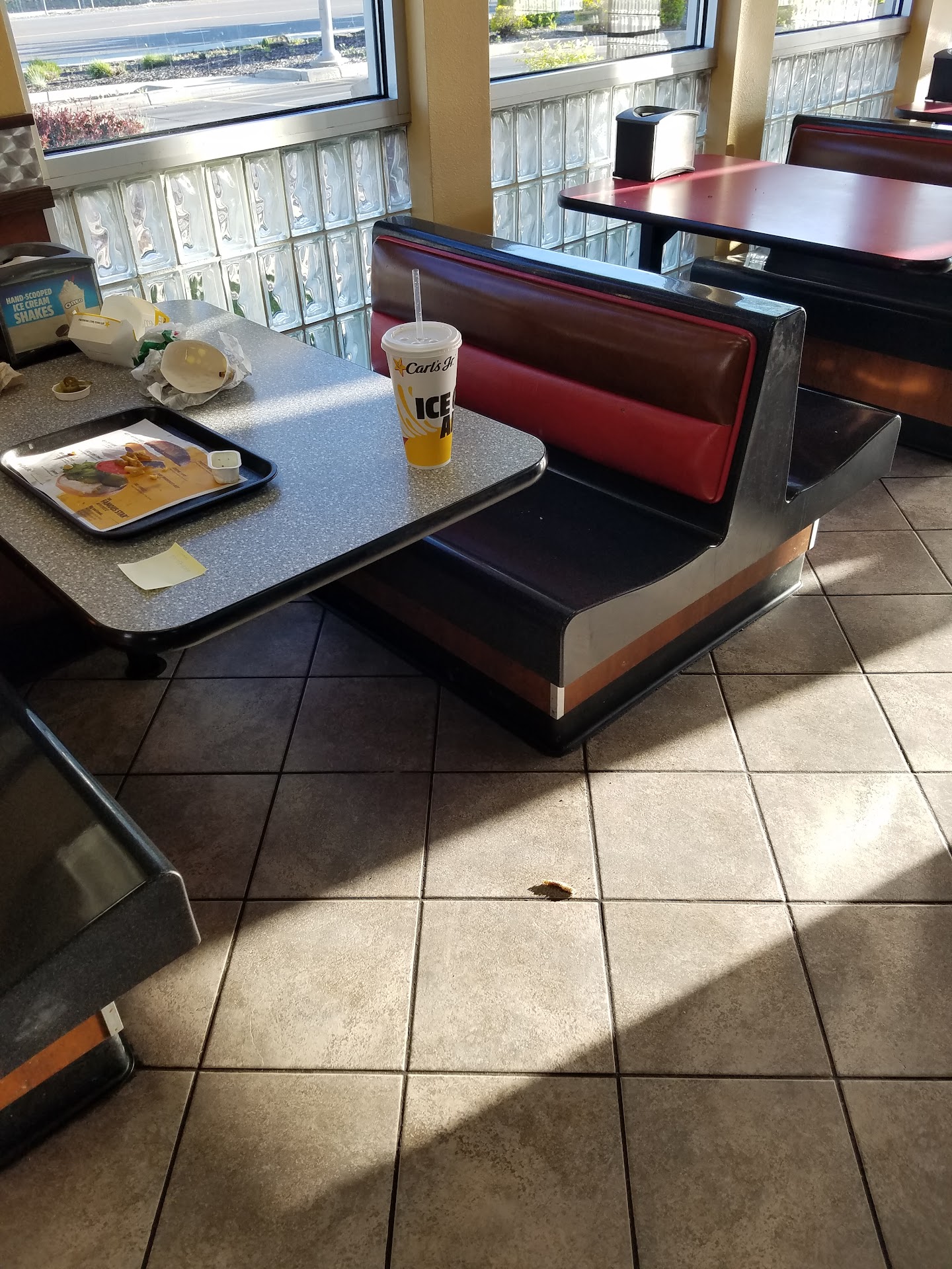 Read moreWaited 20 minutes to get out food (1 salad, 1 taco, and an order of taquitos). This is after it took us 7 minutes just to place the order as the kid on the counter seemed very new and overwhelmed. All this time the kid was struggling the manager and other crew sat in the kitchen area talking instead of helping him out. So about 30 minutes of total wait time! I figured a positive to this is at least my food would be fresh, but that didn't happen either. Taquitos cold, salad disgusting, just awful food. On top of that while we were sitting down eating we could clearly hear the employees using profanity in they're conversation (not a big deal except they were in the dining area now in front of customers) to which I found was very innapropriate and unprofessional. I will never return to this location. I love carls Jr. But I will not spend my money here! Terrible service and terrible food. Complete waste...