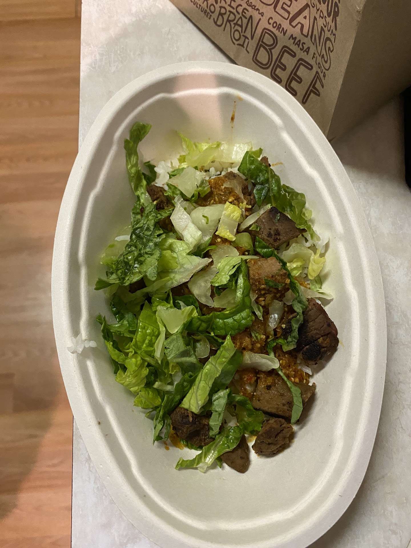 Ordered online at 5:50pm on a Saturday. Thought it would be busy since it’s new. Well, my family and I got there at 6:10 (when they said our food would be ready). Well there were about 10 other people waiting for their to-go orders. That’s fine. We can wait a couple minutes. At 6:30 we asked (not a lot of those people had left yet). They said they received our order but it wasn’t done yet. That’s fine. Maybe short staffed? (Shouldn’t be on a Saturday night when they are new). Anyway, we sat and watched at least twenty people come through the line and get their food eat and leave before we did. AN HOUR AFTER THEY SAID IT WOULD BE READY at 7:10 we finally received our order! We were sitting there with our two kids and they were antsy. (We did ask for our drinks sooner and they gave us a bag of free chips). We got home (not wanting to spend any more time there) and they gave us a burrito bowl instead of an actual burrito. And the portion sizes WERE NOT WORTH $11!!! (See pic) I can’t believe how much they DIDNT put in). The kids meals are also not worth even $5. I really want my money back. We were so pissed. We should’ve asked for our money back and went to Cafe Rio, Costa Vida, or Moe’s.