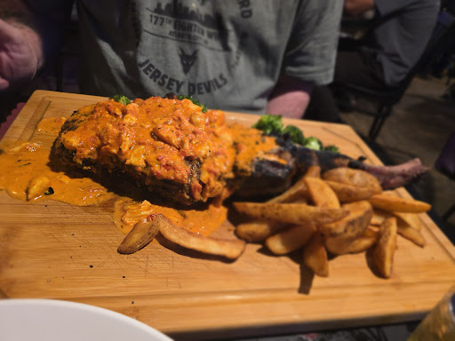 Ā Ā Ā Read moreI heard such hype on Facebook about this little Hole in the wall place you would have ridden right by...WELL LET ME TELL YOU STOP IN IF NOT CLOSE TAKE A RIDE FOR SURE. 14 Oz ribeye on top is garlic mushrooms & onions. ..With fresh tator wedges...added to share with my Eddie was appetizer ...(Bacon wrapped Scallops) to be brought out with our meals š my kinda Surf & Turf...Did I mention the salad with homemade chunky Blue cheese chipped slices onion and chipped sweet pickles it was just so fresh every thing was absolutely OUTSTANDING šÆ PERCENT ONE OF MY FAVORITE MEALS OUT IN A VERY LONG TIME...THANK YOU MY š VALENTINE!!! IT'S A LITTLE HOLE IN THE WALL PLACE KINDA IN OFF THE BEATEN PATH ROAD IN TABERNACLE WELL WORTH A DRIVE OUT FROM TOMS RIVER!!! ABSOLUTELY A MUST TRY!!! OWNER IS A SWEETHEART AND WAITRESS GREAT & THE LITTLE BAR AREA WAS PACKED...LOOKS LIKE A PLACE YOU WOULD DRIVE RIGHT BY BUT I SAW ALL THE REVIEWS ON IT AND YOU MUST GO FOR THE FOOD& DRINK IF YOU DRINK..DID I MENTION GREAT GARLIC BREAD ??? OH AND A MINI CANOLI WHICH WENT WITH THE MEAL...SO OVERALL IT WAS š¤ A 20 NOT A TEN... 3/4 OF MY MEAL ALL CAME HOME...CANT WAIT...