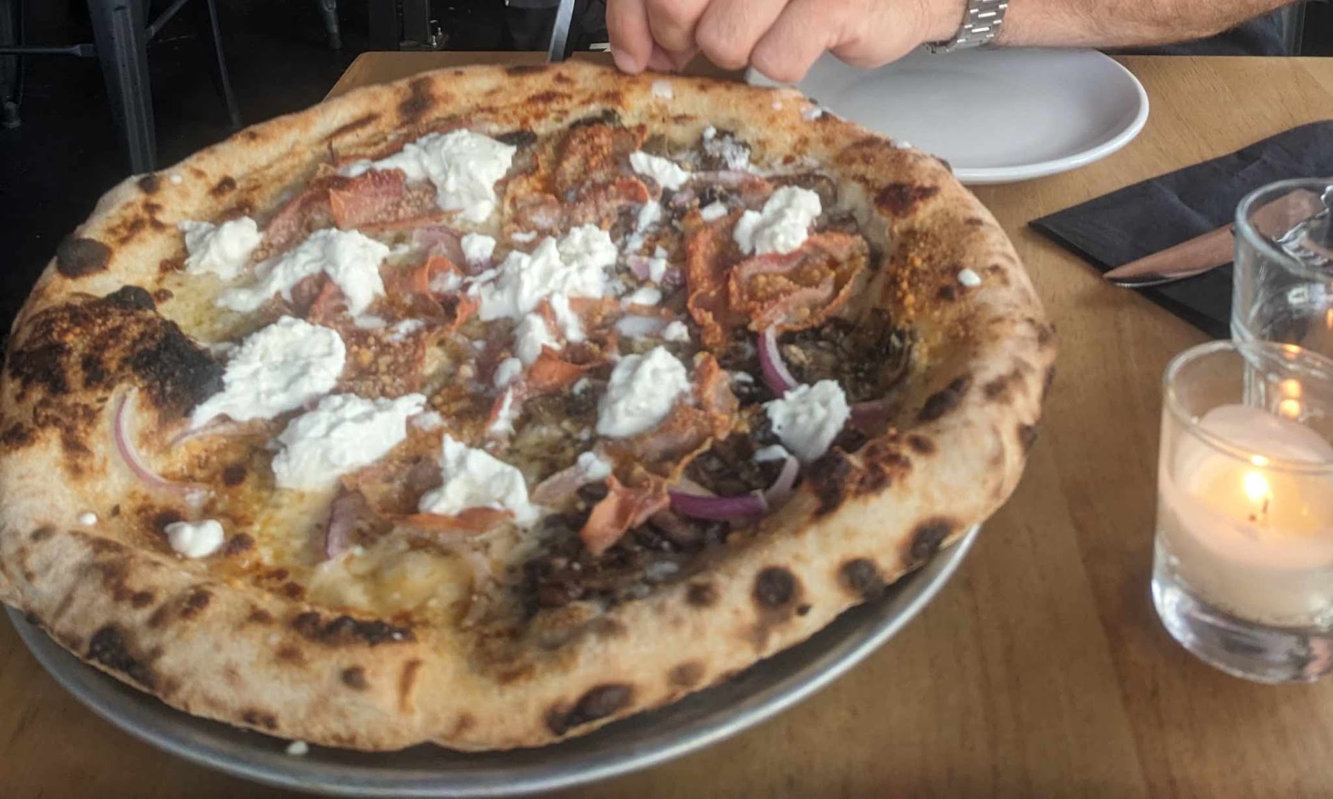 The food here was terrible, it's wood fired pizza, they make everything in house, and normally I would absolutely love a place like this. Both our pizzas were charcoal across the bottom, with huge burnt bubbles across the top. They don't use traditional toppings here, so don't show up expecting normal pizza - I ordered a pretty baseline margherita pizza and my partner a more unique one. For my pizza, it was very watery straight out of an unseasoned can of (blended i assume) tomatoes, with mozzarella and basil. Well, they fired the basil on the pizza so it also came out charcoal, with a soggy burned crust that was very lightly mozzarella. I don't recall the name of my partners pizza, but it was like chewing a toasted brick of dry parmesan cheese.