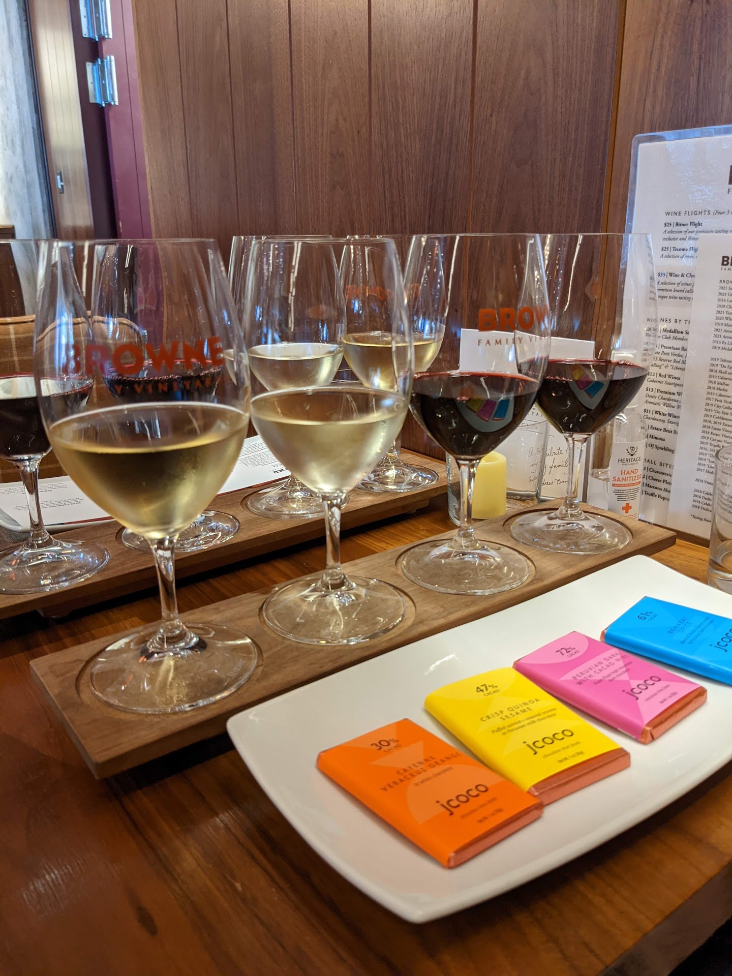 Wine tastings ranged from $20-$35. You can also order wine by the glass, beer, and snacks to go with your wine. We ordered the wine and chocolate tasting and a charcuterie board. We thought the charcuterie board was a bit small for the price, but it was all very tasty. The wine and chocolate tasting was also really good - the pairings were perfect.