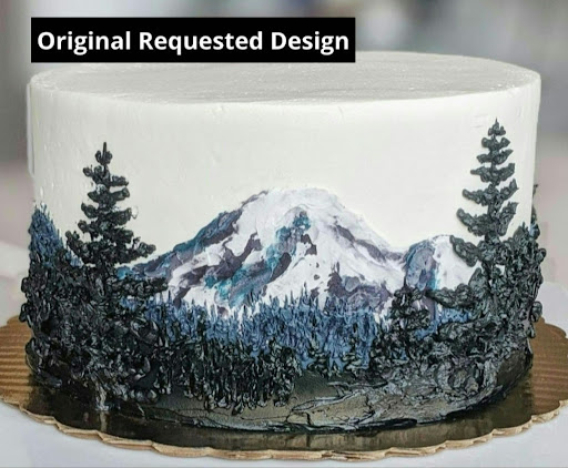 I found this gorgeous photo of a cake with Mt Rainier on it linking back to their instagram, so I inquired about it, and they assured me they could closely replicate their same design. I wanted to order a cake for my wedding in June and they wouldn't let me order it till January. Weird, but whatever. I specifically asked the staff what a general estimate would be on price because I didn't want to fall in love with a cake far outside my budget. Their exact email to me was "for sure under $100". I emailed them again in January like they requested, and the same exact cake I got a quote for four months prior was now $180!!!!! Nearly double!!! The gave me some run around BS about inflation, which I understand prices going up for, but not double...... They also offered me their "signature mountain range design" for $105 to keep costs lower too if price was an issue. I was a bit upset, but honestly, the design was so beautiful that I convinced myself it was worth it.
