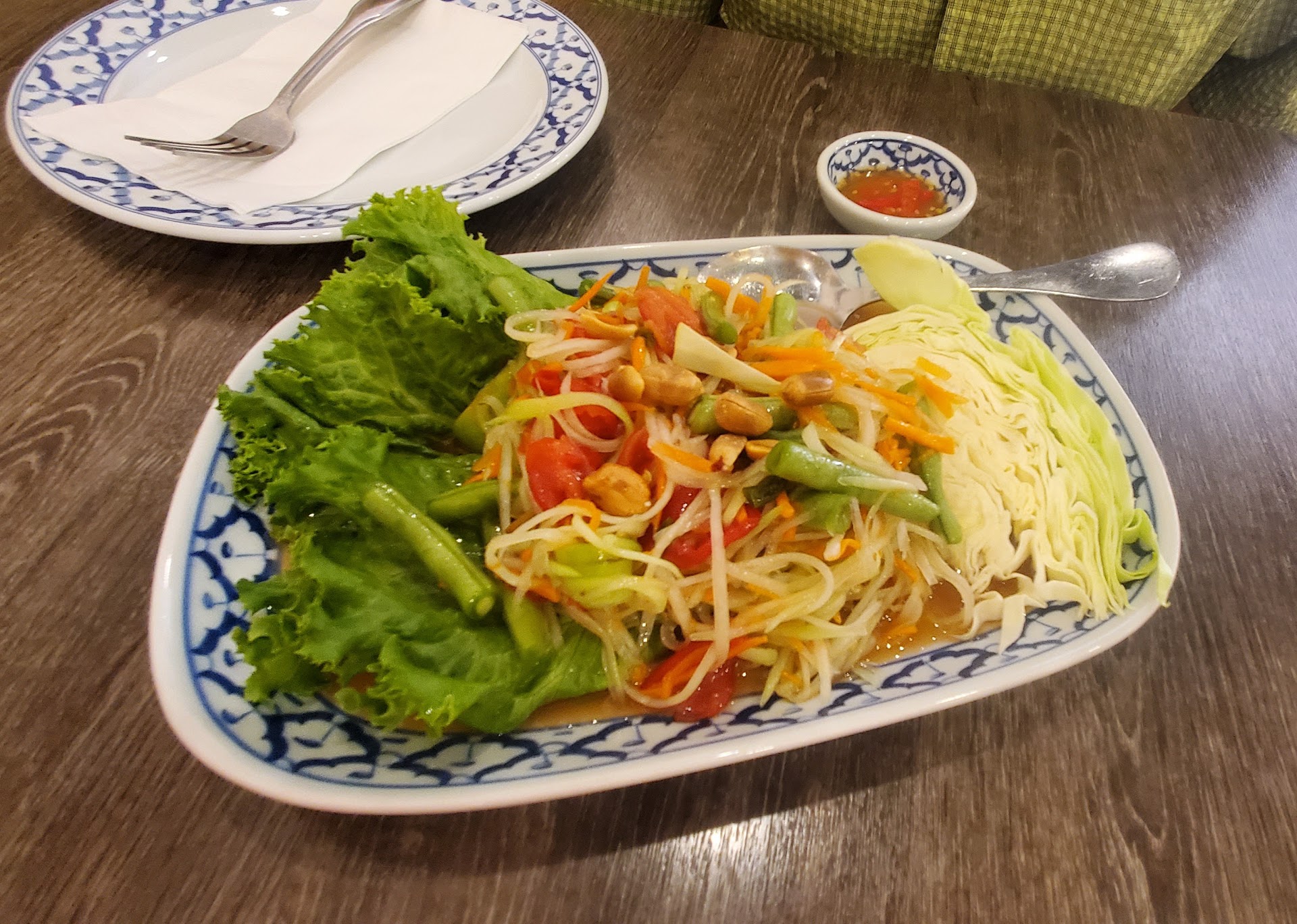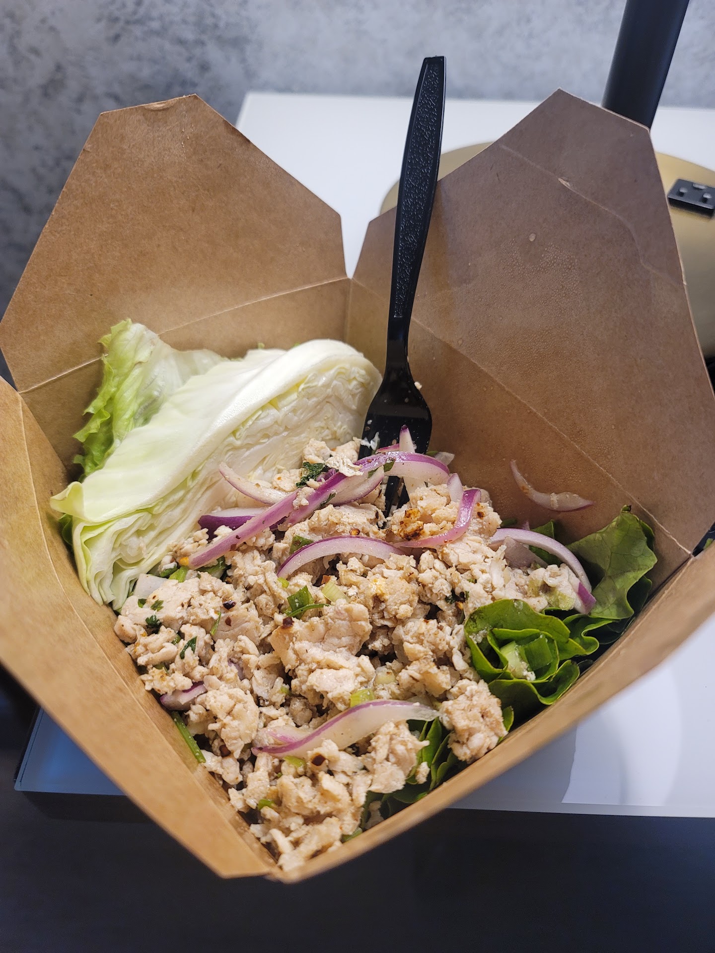 But they more than made up for it by putting easily half a bird worth of ground chicken into this larb! I've had a serving and it still weighs multiple pounds! It looks like a keto friendly meal, too, if that's your thing, and it's perfectly seasoned and textured. We'll be sure to come back here next time we make...