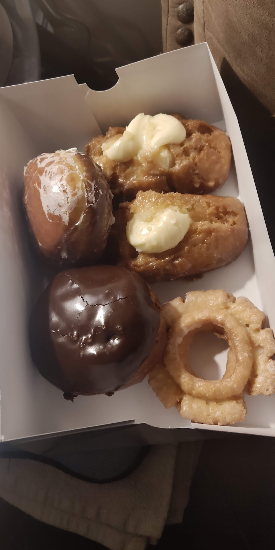 Read moreI’ve seen this place open forever now I just had to stop by with my Grandpa, the donuts are amazing! Soft middle & a little crunch on the outside (glazed twist, coconut cake donut, Apple fritter & lemon filled donut) I’m very pleased, the coffee (vanilla latte) was a little strong and wasn’t fresh but you will be awake after drinking it hahaha, the store set up was so peaceful & a little old fashioned! I really enjoy how bright it was inside the shop, I have depression & this place was warm & happy, she even has plants!!! I’m a fan of plants, I left happier then I walked-in, the lady was so kind & sweet as well, the only thing that we both didn’t like is that there is ants that crawl on the food…. there is a better donut shop that keeps up with their donuts on 56th and Portland Avenue and they don’t run out this place runs out but it’s still a...