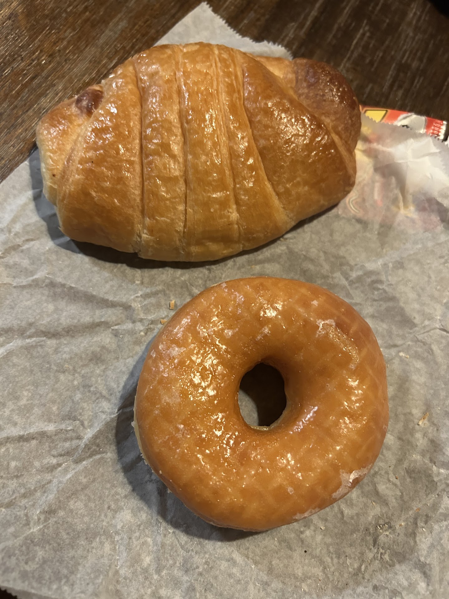 Read moreI consider this an average donut shop. I and a friend stopped in to have coffee and donut. Again I consider average, nothing extraordinary about the place. It does have drive-thru service; however, we didn't use it. Instead we went inside. We ordered apple fritters and then a cup of coffee. The apple fritter was with flat and shape, very sweet, and on the crunchy side. I was not impressed; however, it was good, but it's not a place that I would miss if I never went there again. It would be nice to find a place that actually put a good serving of apples in apple fritters instead of loading them up with sugar so that they're almost too sweet. The coffee was very hot, which is a good thing, and bitter. The place is clean inside. The ration out napkins you have to ask for for them and they give them out very sparingly. The counter service was okay-it was prompt and courteous. Yes I'd stop in there again but not go out of the way for the place. Oh, and they did seem to have a good assortment of various donuts, maple bars, chocolate bars, apple fritters, regular donuts, etc. You just cannot beat Krispy Kreme for their...
