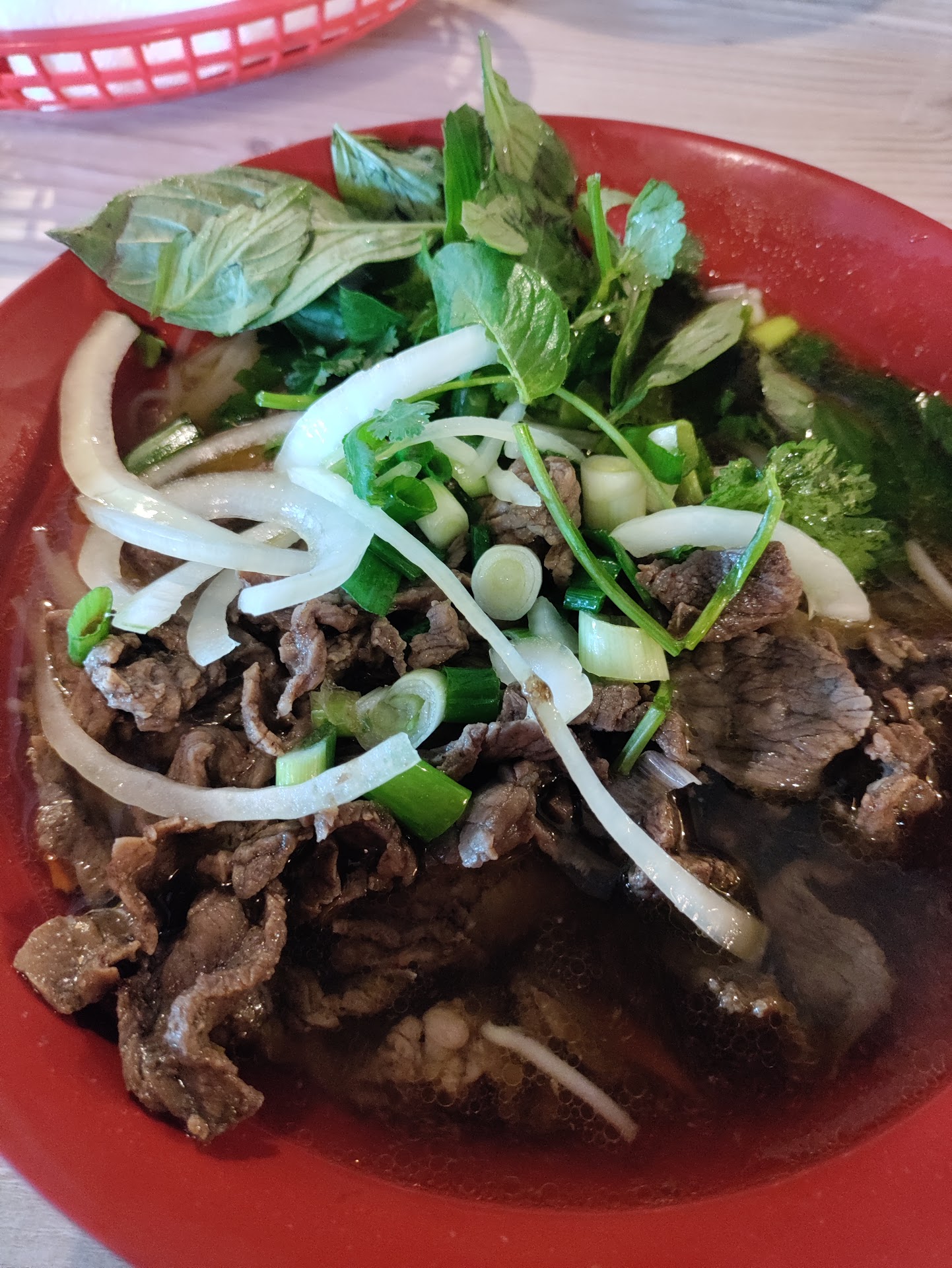 This was my very first time visiting and upon entering the atmosphere is beautiful and welcoming. Staff is extremely courteous and nice. My only issue was the food. I am an expert pho eater and have tried many different locations of the same that I ordered. It really surprised me when I ordered it here and my pho was sweet as if there was sugar in the broth. I was not given no beans sprouts even though I requested them not sure if they come with the dish at this location or not but I did request them and did not receive. I also ordered an order of egg rolls. They weren't even hot, they were barely warm as if they were microwaved and yet they came out after I received my pho. I also tried to order a bubble tea of a flavor that I had never heard of before. I was not able to get it because I believe they were out of their bubble tea at the time which was upsetting. They only have one size unlike other locations where you can choose a smaller or large. And it almost seems as if they take out some noodles to make room for the vegetables which was not cool. If I'm going to pay $10 or more per person, I want them piled up!! I'll consider giving another try possibly but it was more of a surprise when I ate the steak pho and it was sweet tasting...I didn't know pho was supposed to...