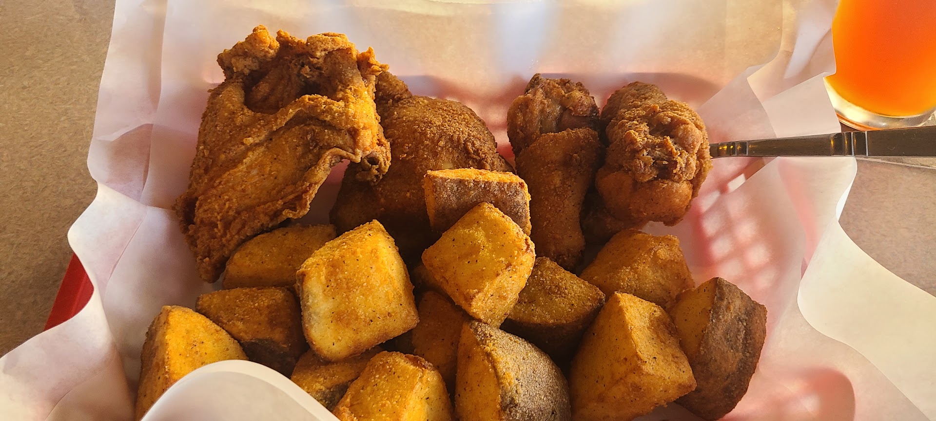Read moreWish I could rate it even higher. I just moved here from CA and we could smell the chicken every night as we drove past to our house. Looks a little scary on the outside but when you walk in the door it feels like you just walked into cheers bar. Everyone is friendly and helpful. THE CHICKEN AND JO'S ARE A MUST!!! It takes about 20 or 30 min for the chicken to be done and while you wait you can play all these little games or shoot some pool. I feel so blessed to have a place like this down the street from my house. The lady who works Saturday is amazing she is so helpful fun and a blast to talk to. I LOVE IT I LOVE IT I LOVE IT!!! (yes its better than roscos chicken and waffles even though I might get killed just for...