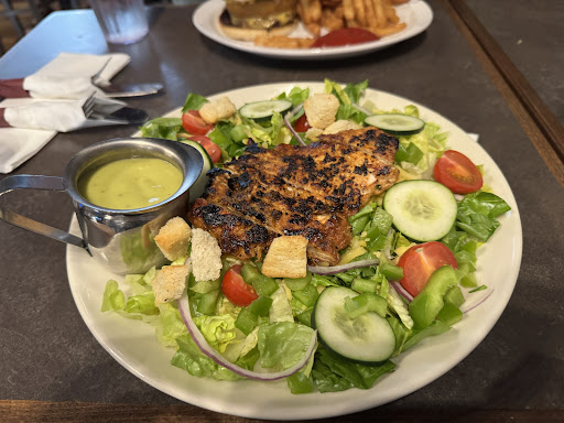 Food was pretty good, burger was prepared well and cooked to order. My salad was huge and the chicken was so, so flavorful! The recommended avocado dressing, while thicker than a typical vinaigrette, was delicious! Had our water been refilled without having to wait with an empty cup for 10 minutes, this would have been a much more...