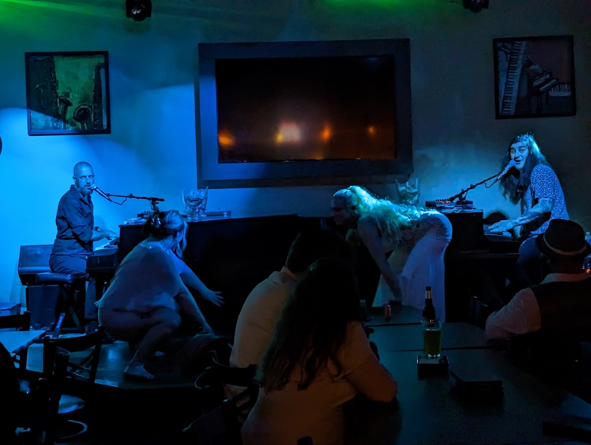 Read moreThe manager, servers, host, and even security were all great. First- make reservations online for a Friday or Saturday. Yes, you do pay a $10 per person cover to do so. Although, it was worth making sure to have a table. Was sat at a table, where water was dripping from the ceiling- manager came as we didn't want people to slip and fall and he moved us. You can bring outside food in (no liquids)-as they don't serve food. I actually was 100% ok with that! The three different performers were all very talented, played great, and had amazing personalities. You can fill out music requests and walk it on stage (with $love$) or you could pay to have a song skipped- reason for the "How much" slogan on their shirts.