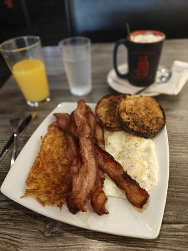 Β Β Β Read moreStopped by on a Tuesday morning around 10am. Ample street parking available Upon arrival, we had our choice of tables with only two other customers already seated. Service was excellent and friendly. Asked for bottled water but unfortunately they do not offer any variety of bottled water so I took a diet coke instead. The surfer scramble was delivered hot to the table with eggs perfectly cooked and moist (not overcooked and dry). House made salsa placed in a small cup on the side was quite tasty and delicious. The kitchen sink was also delivered hot and was quite delicious with eggs perfectly cooked and tasty. I normally don't eat hash browns but these were crispy and light and mixed with a bit of salsa were quite delicious. Side order of peppered bacon was quite tasty, crispy and well cooked but was a bit lacking on pepper. Wheat toast is thick, light and delicious.