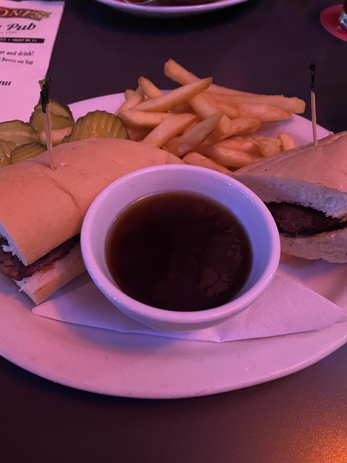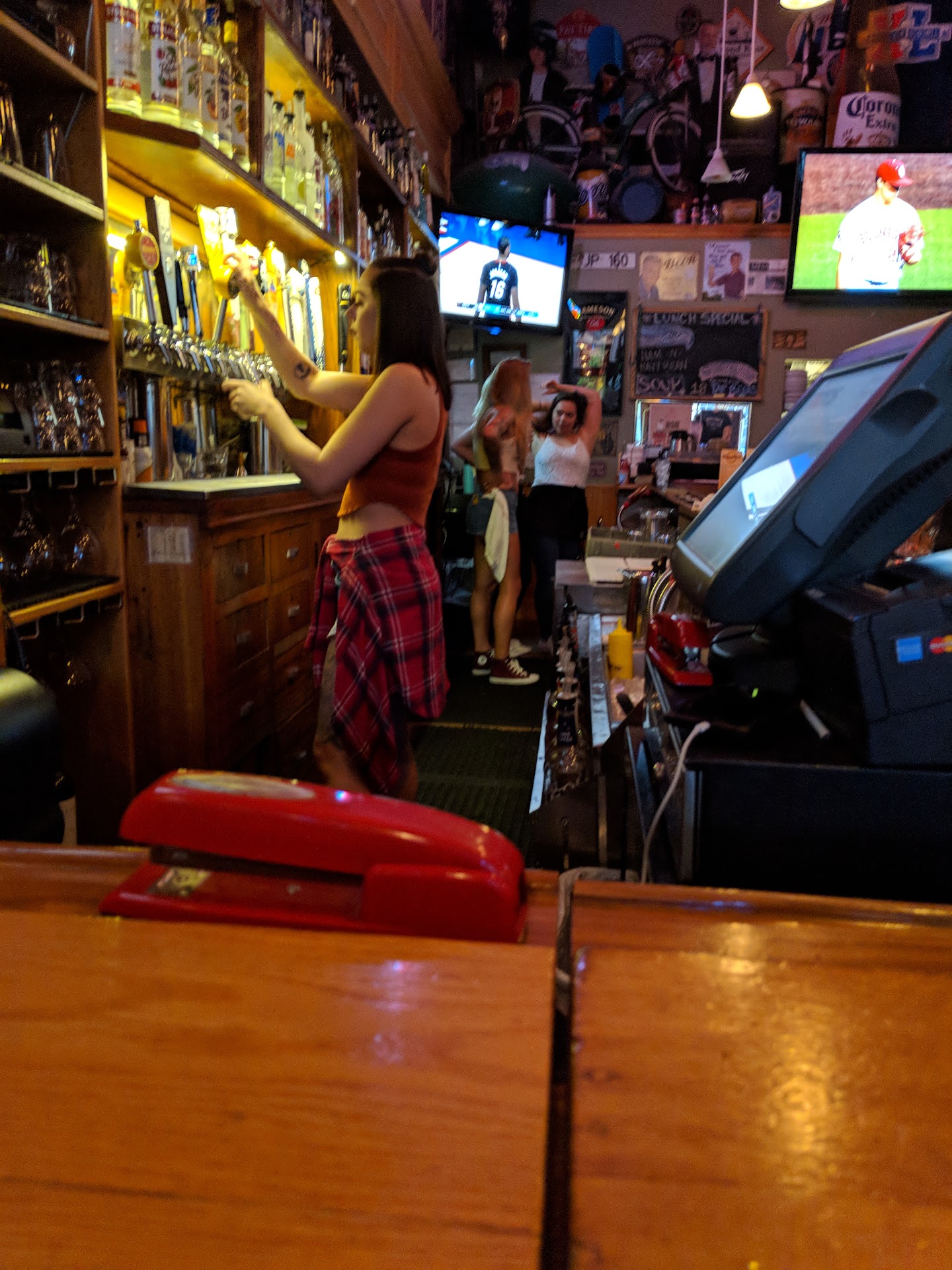 That burger that came out was yelled out from the bar when we were right behind the food service window (Not the best but I get it). All the food came out within 20 minutes of us ordering and we hadn't gotten the two sprites we ordered. Noting that the bartender was busy (But not too busy to take a shot with some customers), we decided to ask about it when ordering something else. One of the members in our group asks about it and he leaves to grab them before letting my friend finish what she was ordering, which included another sprite. She was then told "You couldn't have told me that before?" while begrudgingly pouring another sprite.