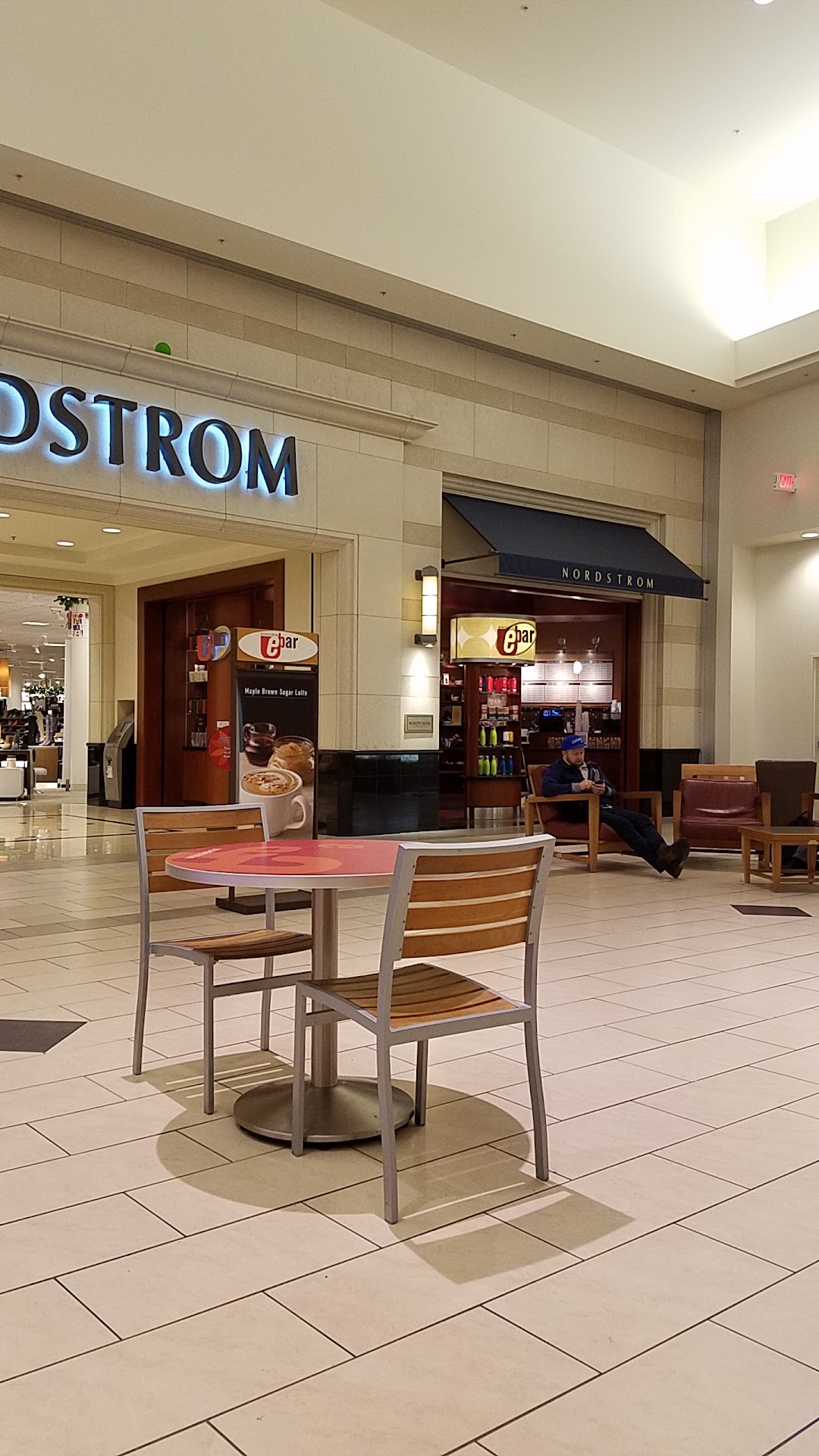 The name probably could use some work,"ebar" sounds like a nutrition energy bar, but otherwise I love getting my coffee here while I shop. It's never as crowded as Starbucks, there are plenty of tables to sit for a coffee break, the staff is friendly/cheerful, the food is tasty, and most importantly I have never found myself regretting my coffee orders. Good job Nordstrom, just consider changing the name to something more elegant to reflect the pretige of...