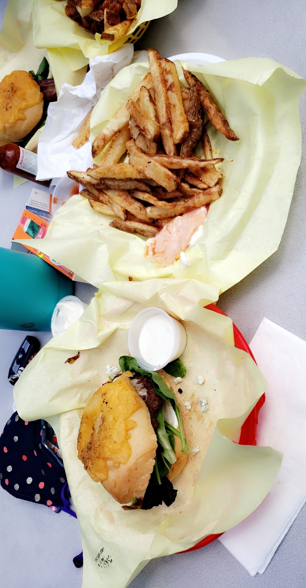 Oh wow this is pretty disappointing to write this. I honestly was going to let it be but seeing all the negative reviews match my experience and there are tons of positive I just wanted to share. We were excited to give this a try, the reviews are great theyâve been featured in local news. On top of that I love supporting black owned business & I do NOT like âtearingâ them down which is why I was so hesitant to want to even write a review. Our wait time was not bad, maybe 20/30 minutes which was totally fine as I saw there was 1 person cooking outside. Smelled delicious. So while I was waiting I was excited I was about to eat their self proclaimed âbest burger everâ. We actually were going to go to frisko freeze but decided to go here instead. (I regret that now). The fries were unsalted soggy, and honestly partially raw. So already I wasnât off to a good start about it but thatâs okay certain fry styles arenât for everyone, however seasoning is. But the point that wasnât a big deal to me at the time. We finally get to our burgers. Bacon cheeseburgers, that state on the menu they come with mayo (maybe ketchup not sure on that one) it also states it comes on a âKaiser rollâ. When I opened the foil it was a cheesy Kaiser roll feels like that shouldâve been disclosed but whatever, Iâm checking out the burger and it looks like itâs dry no mayo no nothing I try a bite it taste so dry everything about it. So I pull it apart to see if thereâs mayo thereâs a little bit of mayo watered down with the pickles juices on the lettuce at the bottom not enough to help. I also discovered they had torn 1 single slice of cheese and split it between the 2 burgers so there was a stripe of cheese going down the middle not barely enough to call a cheeseburger and there was 1 HALF slice of bacon on each burger. Not 1 broken in half on each burger. They put a single piece of bacon between 2 burgers. Also because we pulled our burgers apart we were able to see that, some of the ingredients didnât look fresh which you obviously were able to tell while eating. The bun was so stale as I chewed the rest of the bite it balled up into a little crusty ball I ended up spitting out. My wife tried hers it was so dry and stale she was washing down every bite with a sip of soda. Iâm assuming they left the bag open or something. All and all we ended up throwing all the food out as it just wasnât fresh and we didnât have any condiments to even attempt to revive them. We waisted $50 when we couldâve spent 20 at frisko and known what we were getting. I cannot believe we paid almost $50 when it was all said and done. Why the hell could we get a single slice of cheese and a slice of bacon each....