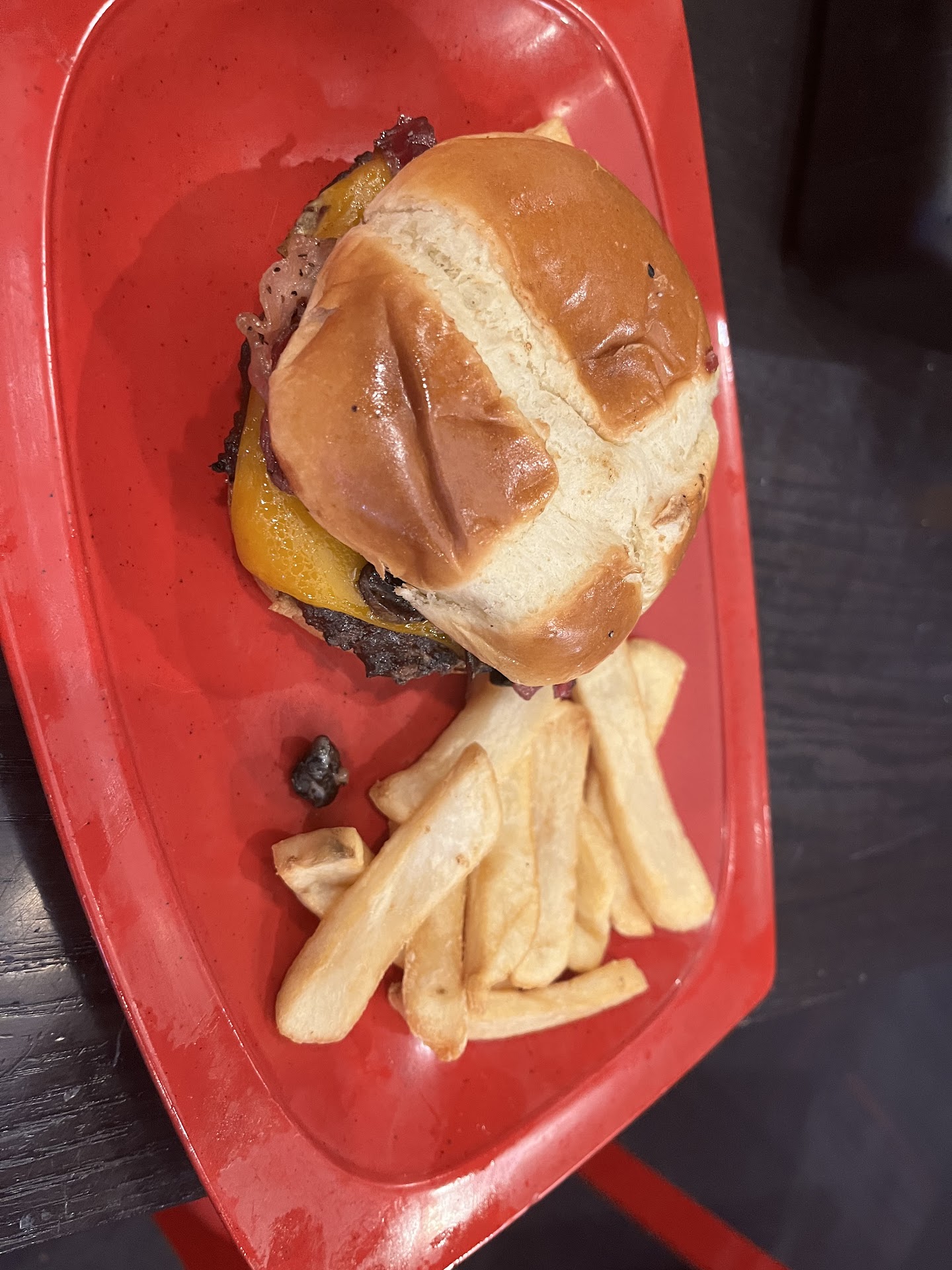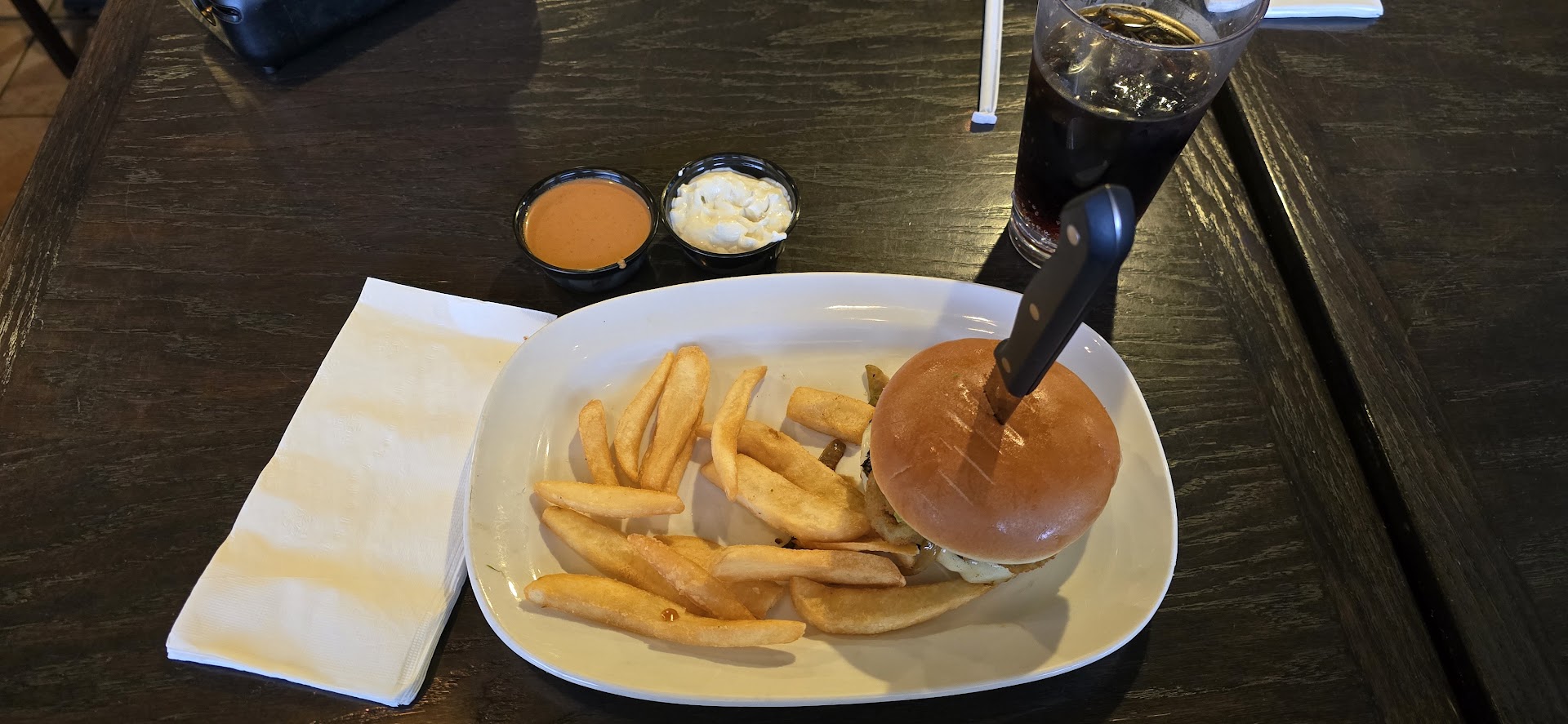 Back to the service- our waitress was fine. Food was slow (busy time - so okay). My husbands "refill fry" took FOREVER and then it was cold. By then we were just done. BUT the table kiosk to pay was not working so we had to wait for our waitress to be not busy (she was very busy as she had several large tables) so she could take our payment.