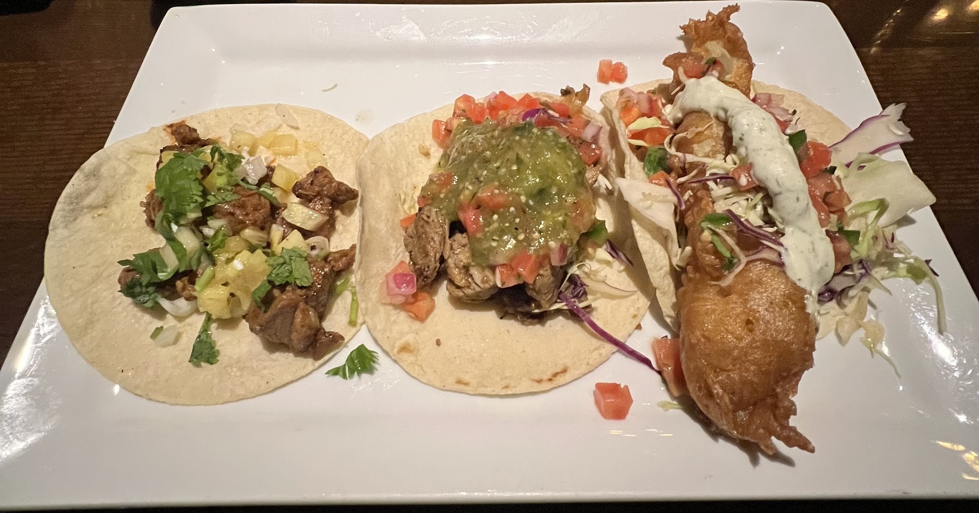 Read moreLast week we went to Red Star Taco Bar for an early dinner. We arrived before 6 so HH was still happening. We ordered our drinks and an order of the chips with salsa and guacamole. We also ordered a few tacos. I got the chicken tandoori taco, Buffalo chicken and Baja fish taco all on flour tortilla. The food arrived quickly and service was great. I personally am not huge on salt but I felt like the chips and guacamole needed more salt but it was still delicious. The tacos, the tacos were the star of the night .... The red star of the night?! (Hmmm am I on to something here? ) I started with the tandoori chicken, the flavors were beyond and I was doing a happy little dance with every bite. The sauce (riata) was delicious and complemented the chicken very well. Next I tried the Buffalo chicken. The chicken was plenty and the Buffalo sauce was so delicious. Crumbles of blue cheese added an extra level of goodness to the taco. On to the Baja fish taco; the fish was crispy but juicy. The house Baja sauce was delicious too. I just wish I had the fish taco first then followed by the other 2 as the fish had gotten a little cold but that's my mistake for not having a proper plan of attack in place. All and all a great experience complemented with great service...