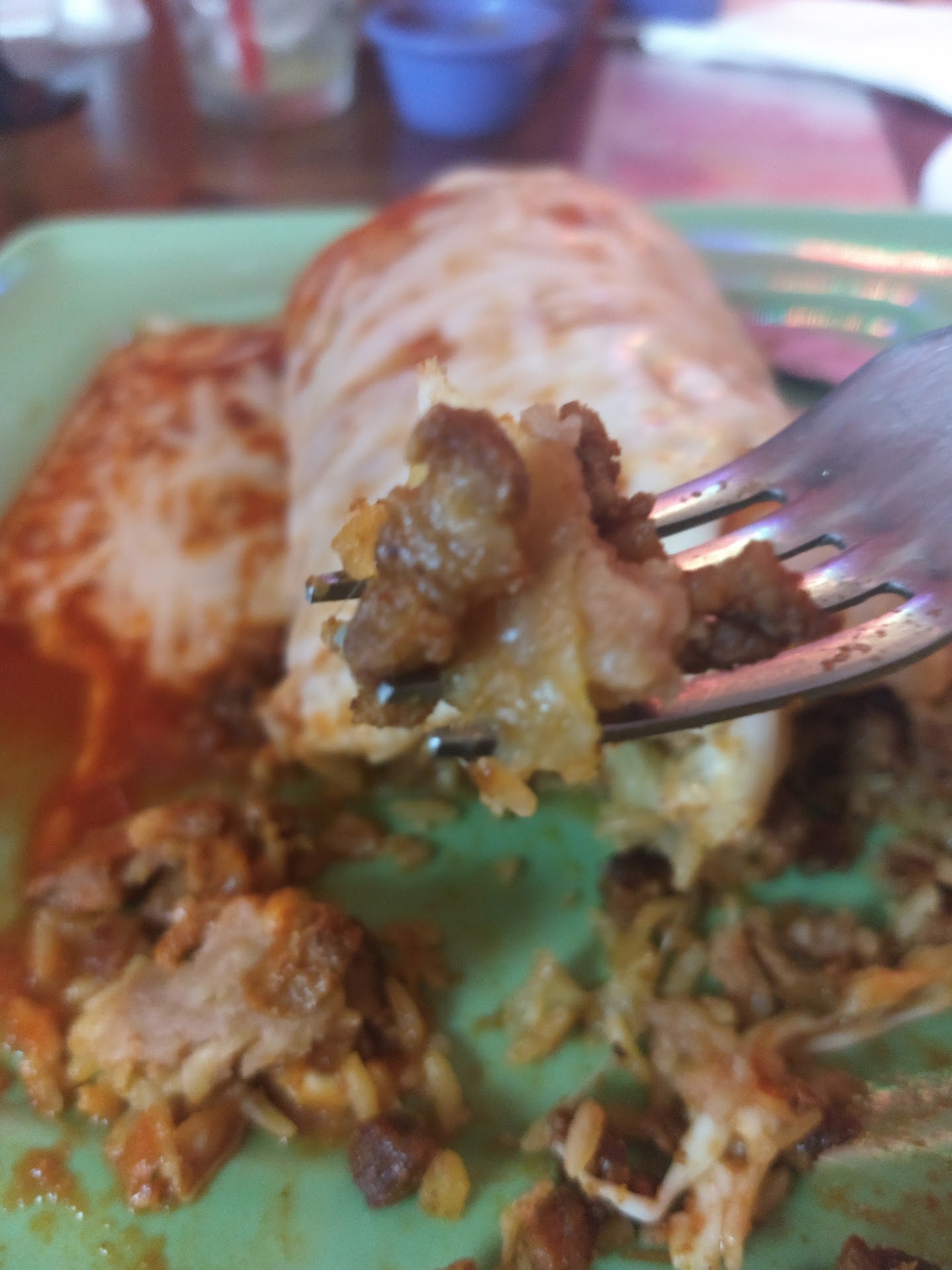 Nothing to write home about. I just bought a house about a mile or so down the road. Every time I drive by their business looks busy so I was super excited to come in and try the food. Mexican food is my favorite! The menu is big, a few pages in fact. And I am probably the most indecisive person known to any server. I definitely wanted to try something I have never had before but couldn't decide what sounded the best. Descriptions are fairly basic so that wasn't helping me decide either. My boyfriend and I decided to start with drinks. He got a margarita and I got a tequila sunset (not sunrise). I was excited because I don't know many places that can make them since they call for a blackberry liqueur in the recipes I am familiar with. The margarita was very sweet. Tasty but sweet. The sunset looked like a tequila orange juice and kinda tasted like it too. I didn't watch them make it, so I can't say exactly how it was assembled. When the waitress returned (very nice girl), I asked her for suggestions. She suggested the burrito. 😔Not what I was hoping to hear, but I love burritos so if the staff likes them I guess I will go for it. Both my boyfriend and I get wet burritos. Mine with the seasoned pork and his the carne asada. They are big and hot when they come out. My boyfriend immediately comments on the lack of rice and beans that the menu stated it came with, and I suggest they might be inside. They were. I feel like the flavor is really good on the meat but that it is a bit dry. I also like the bite size pieces that they are cut into. There is a good amount of pork stuffed into my burrito, but again it is a bit dry. My boyfriend is not happy with his. He doesn't like the flavor or that everything about his wet burritos is dry. I tend to agree. I tasted just a bite of the steak in his as well and it had almost no flavor. He agreed that mine was better seasoned. The highlight of the meal was my Grandeza Margarita. It was a better balance of sweet, sour and booze than the other...
