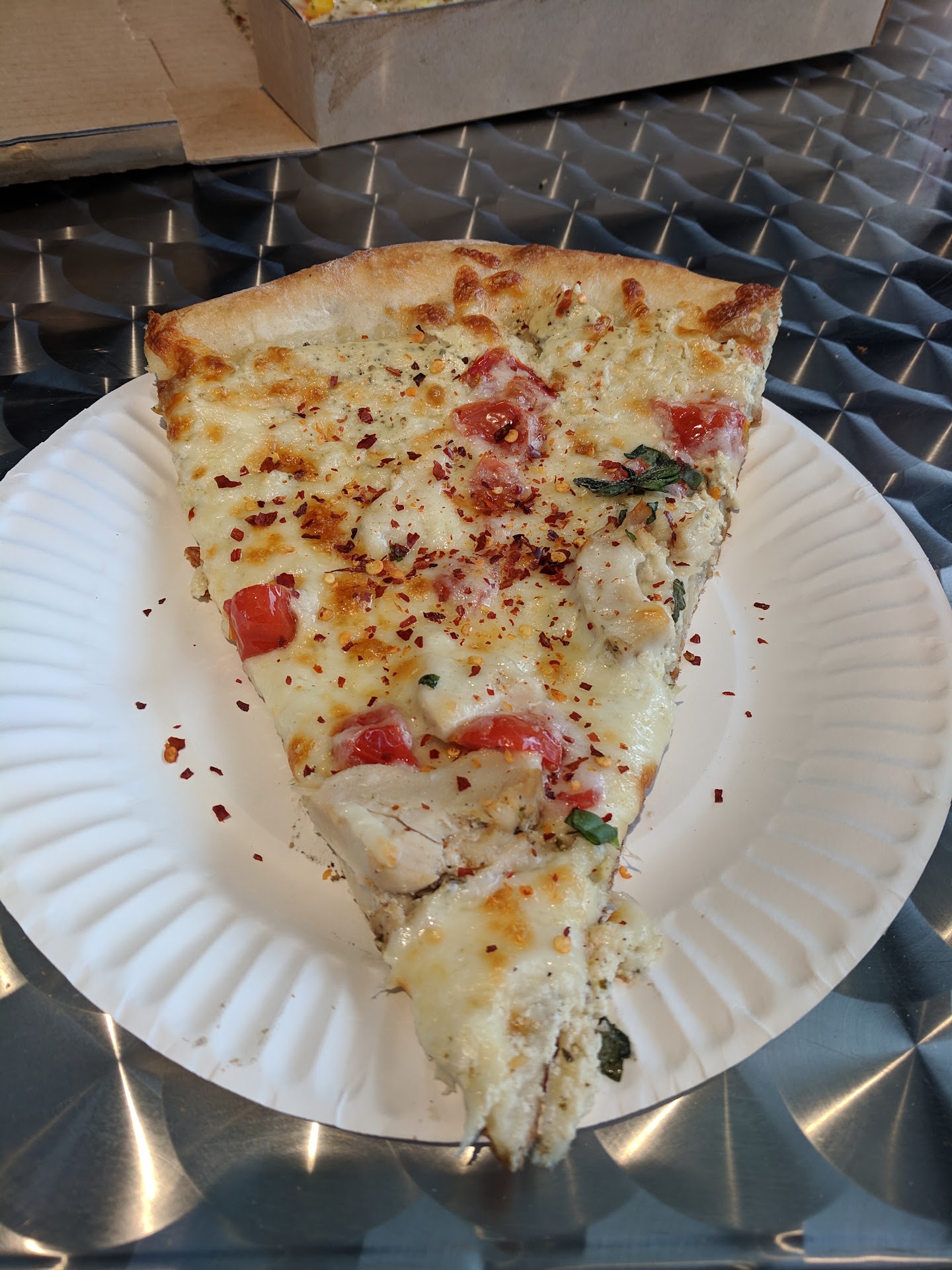 Read moreUpdate. Decided to give this place another try. It's decent in a reheated pizza kind of way akin to NY style, but it's not quite the same. This time it wasn't severely burnt. Calzone was definitely much better than the pizza and was balanced compared to a lot of calzones. Sort of reminds you of dominoes pizza and a store bought pizza combined. It's great if you need something to eat fast with pizza by the slice and like a slight crispy crust on their reheated stuff. Sauce is better than papa Murphy's. Pizza isn't better than Domino's from a flavor standpoint as the ingredients aren't as tasty, but it's a little better quality in that it tastes fresh, but from a major chain. simple, quick pizza. Price may be a factor for some people. It's not cheap, but prices are going up everywhere and this is a local place we want to support.