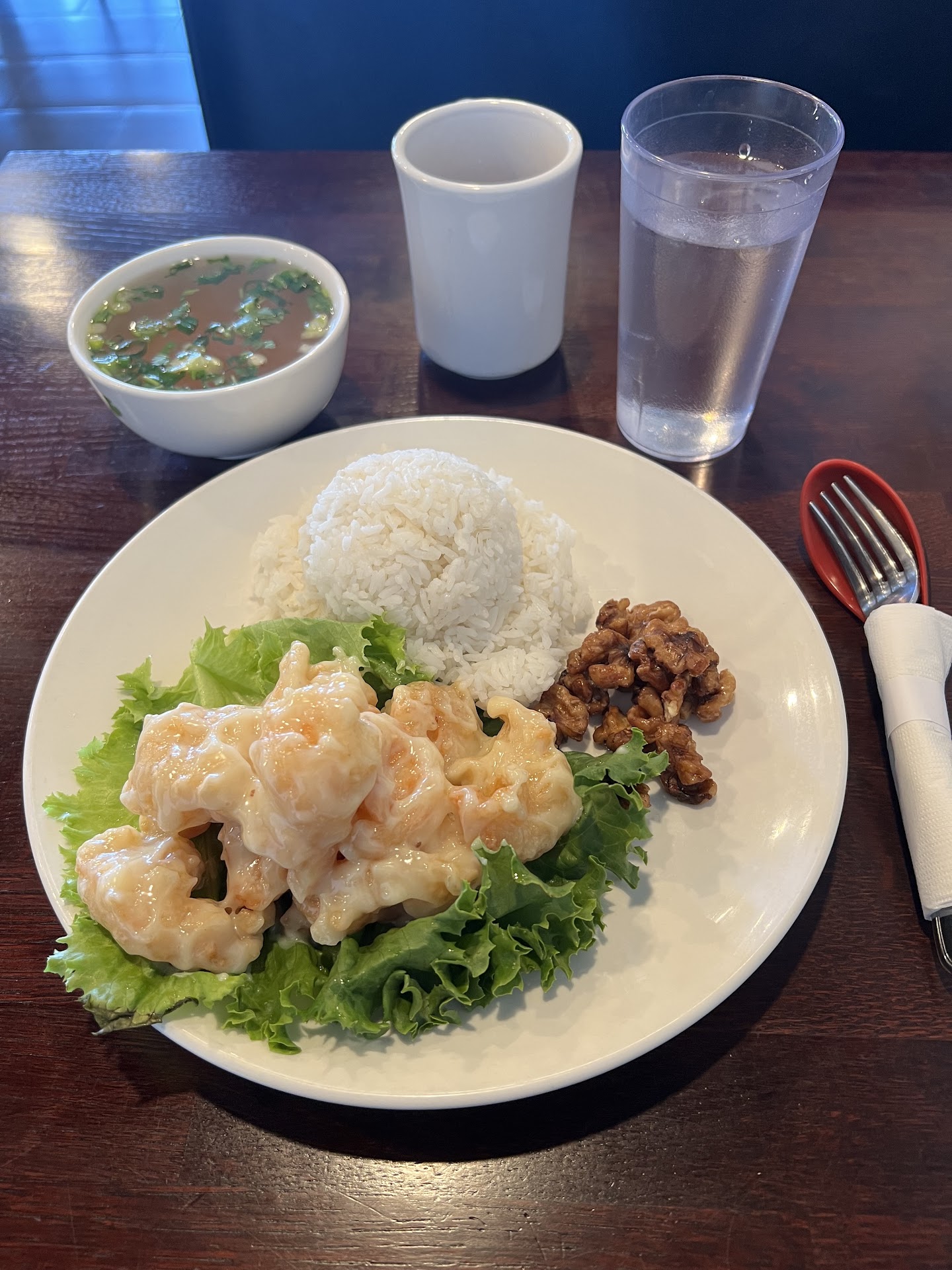I ordered Thai chicken wraps to go. Ingot a to go bin of Romain lettuce, soaked and all stalks And then maybe the side that goes in the wraps.., however there was no way u could even make my own wrap. Cheap AF. And then the lady whom took my oder, after.the math, acted as if I wasn't right. NO MAM... I ordered from you, and you have me garbage!