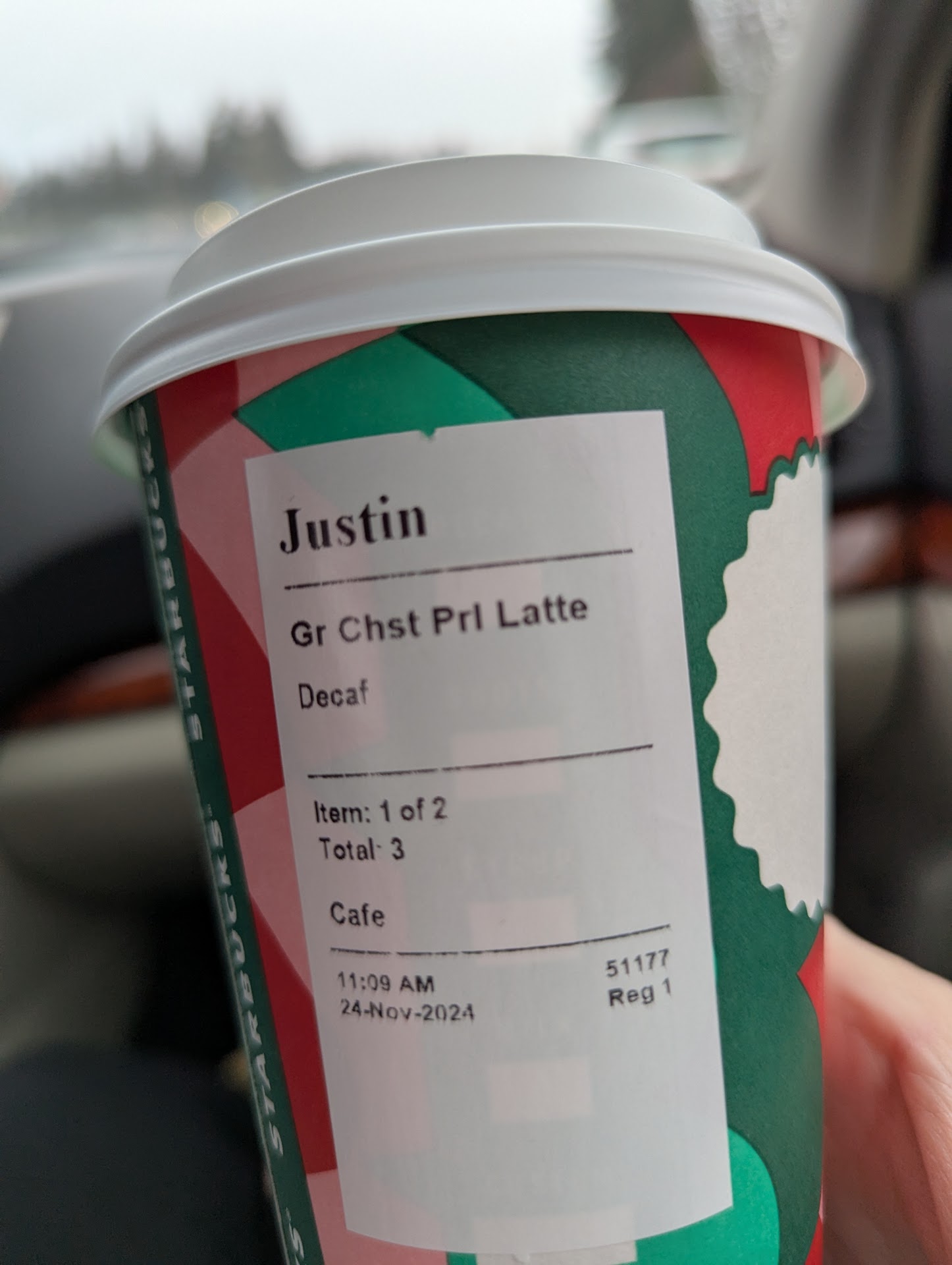 Usually go there without issue. This morning (January 15, 2021)my daughter and I went there after our morning workout. (As we usually do) several issues this morning. For starters... Trash. There was trash on one of the tables and one of the trash cans were over flowing. Seating. Due to current circumstances no one is supposed to be seated in the dining area. There was a young lady seated at the counter with her laptop (quite possibly the manager but think about the image it portrays) Drinks. I ordered a Venti Skinny Caramel Macchiato (that means sugar free syrup is used) with coconut milk and a total of five shots. There were only 3 shots put in and I watched the barista put the full amount of sugar in my drink. The young woman who took my order couldn't even get my name right even after I spelled for her 3 different times. My daughter ordered her(hot)drink as a venti but was given a Grande in a dirty cup. When my daughter told the barista that she ordered a Venti not a grande the barista snatched the cup from my daughter's hand (in an angry fashion)and "remade" her drink. Essentially just pouring the contents of the grande cup into a venti cup and adding milk and whipped cream. Her drink was cold when she finally received it.