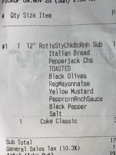 More people walked in, most of whom also mobile-ordered. Within that time, I saw several people go to the restroom (though I guess they weren’t supposed to due to the pandemic) and one worker told them not to go in the restroom anymore, because there was a sign on the door that said so. The customer apologized several times and said he didn’t see the sign, but the worker kept saying there was a sign on the door. Shortly thereafter the customer and his friend left without ordering, probably due to the berating of the worker and because of the long wait time. Meanwhile, it’s after 9:45 pm before I get my nearly $10 sandwich (30 minutes after it was supposed to be done, and about 45 minutes after I initially ordered it). That was only after another person who had mobile-ordered and came in after I did, got their sandwiches (one of which I guess had to be remade and condiments scraped off because it hadn’t been made correctly).