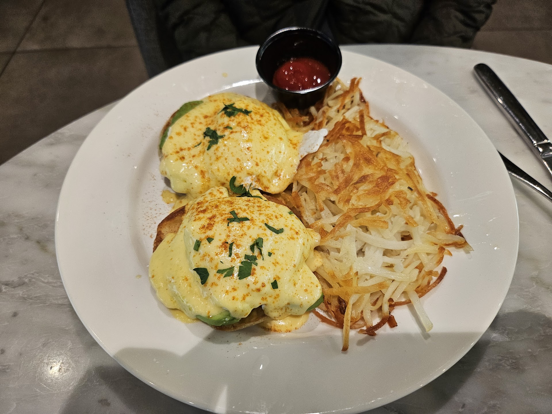 Read moreTERRIBLE! We were there to grab something to eat before our conference at 10 am. First the menu is tricky. I ordered smoke salmon and egg with hash brown. You would think it’s raw salmon on toast , you know that’s usually the case but they just have omelet wirh a few pieces of cooked salmon( hardly can see it ) on it - Menu should be like omelet wirh few pieces of cooked salmon-oh , Not to mention, we asked for a toast since food had no bread at all and when they charge us $4 for one piece of sourdough bread. Just one small piece. Rip off !!!When we told one of the waiter - server which was an Asian looking guy, he had attitude rolling eye kind of personally. There are plenty BETTER local restaurants around the area. Avoid Marriot downtown...