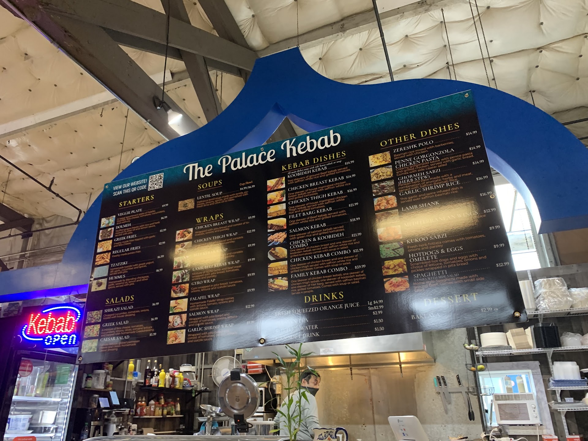 Read moreMy girlfriend and I tried Palace Kebab yesterday and came back today. The restaurant opened a month and a half ago. We had came to the Depot to eat at a different restaurant, but were intrigued by the new place. After our meal at the other restaurant, we went and got dessert. We enjoyed the Persian Tea and Baklava so much, and the menu looked so good, we went back to eat today. Today, we had Koobideh (beef) Kebab, Shirazi Salad, and ended it with more baklava and Persian hot tea. The food is made fresh for you when you order it, which takes time, but it is so worth it. I watched Shawn, the owner, prepare the Shirazi Salad from scratch, chopping all the veggies and seasoning it fresh. Then get the kebabs of meat and tomatoes and peppers ready for the grill. Such high quality of food; everything is fresh and flavorful. Shawn was also very gracious and a sweet man. He was an excellent host and asked us throughout our meal if there was anything we needed as he kept busy prepping things in the kitchen. My girlfriend and I had been looking for great kebabs, and Palace Kebabs does...