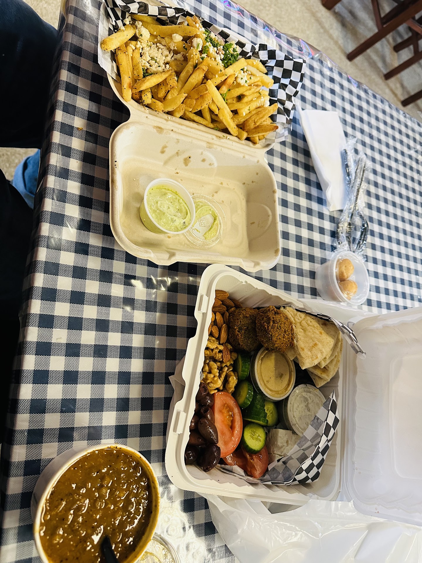 Read moreWe ordered several things to share, and all of it was great! Our favorites are the lamb & beef gyro, the Greek salad, and the veggie plate, specifically for the tzatziki on pita with cucumbers feta and olives and the walnuts and almonds were perfect with this. The Greek fries with garlic sauce were also excellent. We were also gifted a little dessert. I wish I knew what they were called, because I’d order them every time. Little delicious pillows of cream. Service (front and kitchen) were so welcoming!!! We will definitely be back!…we have eaten there multiple times since. Tonight was as excellent as always. Once again, fabulous! My favorite thing (so far) is the veggie plate! The hummus is incredible and topping it with the walnuts, veggies, and cheese…so good! The garlic fries are incredible and I don’t even like garlic fries. The gyro wrap is large enough for two, especially with all the sides we order! We are so happy with everything (ordered delivery) and are looking forward to going in to eat to try some of the other dishes! I am in love with the cream puffs (noon khamei?). They are simple and perfect. I’m always in awe each time I eat the sweet little clouds of cream. The one time we went in to eat everyone was so friendly and welcoming. A true hidden treasure in Tacoma!...