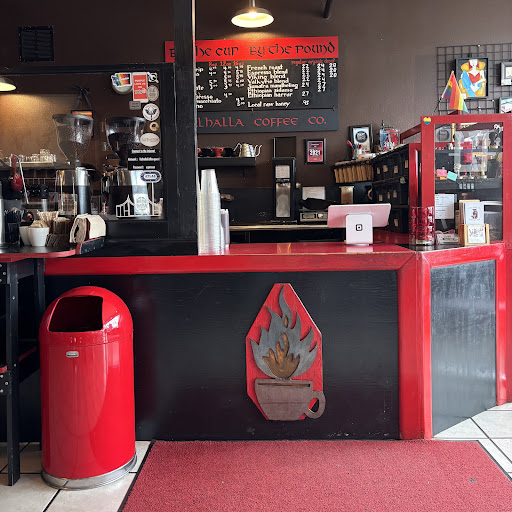 The atmosphere was very pleasant quiet and comfy. Seating is limited. Two or three tables and chairs along the wall. And a lower bar with several seats at the front window.. The kind of place to come in solo or with a friend for a coffee and chat. Or to sit and read or do some studying. This place is a great find. If your in the neighborhood or near by and not sure where to go for delicious coffee or mocha Valhalla Coffee Co. Is a...