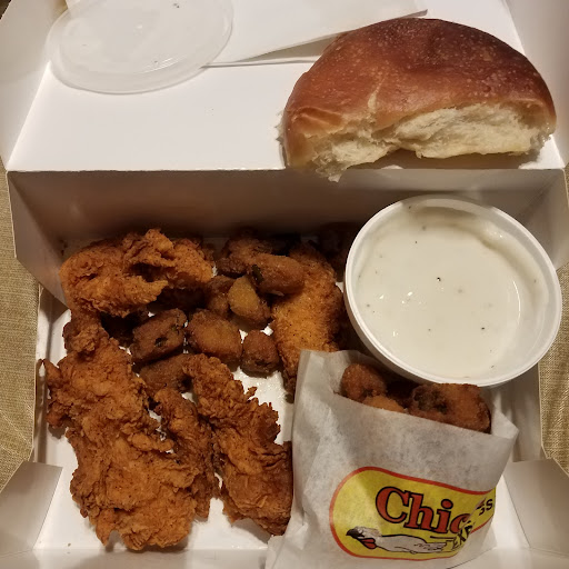Read moreHey, I’m never going to knock a good chicken place. Granted because of the abundance of chicken restaurants in Arkansas, Missouri, and Oklahoma… I’m also expecting a five star rating only for those that go above and beyond. Four stars is on my book a super decent reading and chicken express certainly rests as one of those places that satisfies both my craving and my sense of wonder. Who can stop from wondering what chicken taste like in a place where these logo mascot is a dead chicken carcass being flung across the matte red backdrop!!! Upon entering, there are a lot of options that I would normally see with your different tenders and strips and fillets, but hold your horses… They have an entire menu, selection for gizzards and livers!!