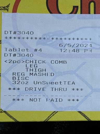 The service at Chicken Express Tahlequah was excellent. Our server was friendly and attentive, and she made sure that our drinks were always full. She also took the time to answer our questions about the menu and make recommendations.