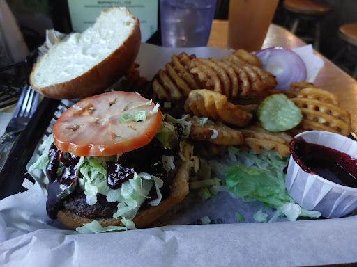 Their elk burger, which states it comes medium rare with a blueberry BBQ sauce, caught my eye, both because I rarely get a chance to have elk and because the blueberry BBQ sauce sounded so unique. When I ordered, I asked if the burger could be done medium instead of medium rare. My server said of course it could, but did politely suggest that because elk is very lean compared to beef, medium rare would have a better texture. I agreed and ordered it that way, and I'm glad I did, it was just right and if I had gone with medium it wouldn't have been as good. The blueberry BBQ sauce was quite good, although I do wish it had been a little less tangy, a little more sweet. But that's personal preference, nothing was wrong with it at all.