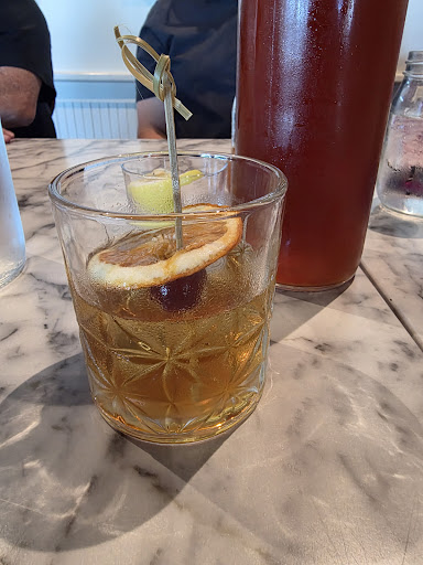 Every other table had water bottles except the one we got sat at but the server grabbed us some glasses of water pretty quickly. We settled on a kombucha to split while we looked over the menu. The server was a little confused on why I was asking the abv for the kombucha. Checked my ID. Seemed very suspicious and asked me if I was over 21. It’s a passport that’s definitely not fake and I’m not going to commit a federal crime to get an $8 kombucha.