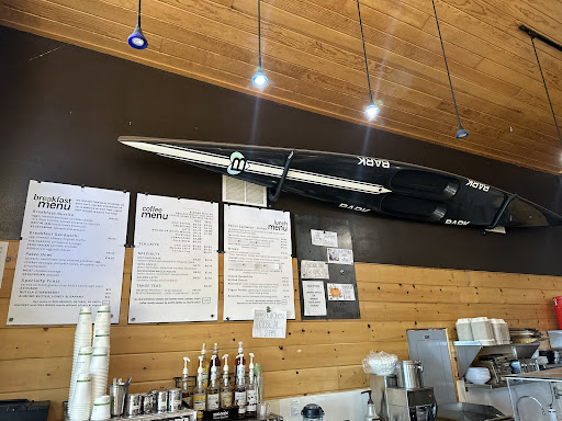 This little coffee shop is inside the lake supplies store cabin. There are souvenirs, supplies for your outdoor weekend adventure, and this coffee shop at the back in the righthand corner. Enter from the back and the coffee shop is right at the entrance.