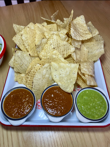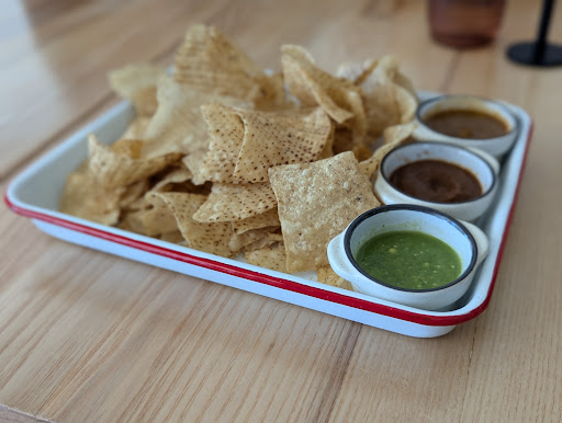 We had a California burrito and a breakfast burrito with chorizo, along with an order of chips and salsa. Both burritos were delicious, though the breakfast burrito was the winner. The cashier offered the option of sour cream on the side for the breakfast burrito, which we did (it's an upcharge on the other burritos that also comes with cheese and guac). The chips and salsa were a good call because we then had a variety of salsas to eat with the burritos (though you can just order a side of salsa for $1). The chips were fresh, crunchy, and not oversalted.