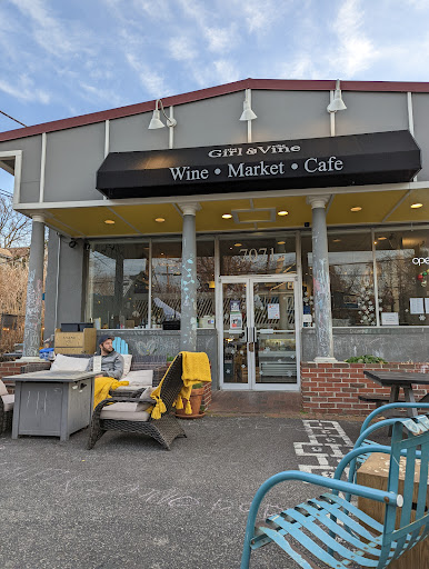 Read moreThe Girl and The Vine is a market, deli, and cafe that opened in April 2019 in Takoma Park, Maryland just passed the Takoma Main Street. There's wood seating in the patio outside and once you walk in, you'll see the market part of the store (they sell local products too like Small Planes Roastery coffee beans). Signs will direct you downstairs for the wine shop and deli (try their famous mac and cheese) and upstairs for the cafe. The cafe is spacious with several tables and a long bar off to the side.