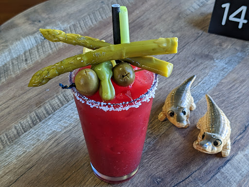 The Bloody Mary was another story. SBS flavors their mix with (what else?) beet juice, giving it a bright strontium hue. The palate is not sure what to expect when the eye sees this color, and the disconnect makes it tough to enjoy your cocktail. The garnish was olives, celery, a pepperoncini, and pickled asparagus. Trying to keep an open mind, I ate the asparagus. I don’t recommend this. It was all I could do to keep it down, and I came to regret the effort later.