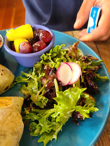 Read moreThe building is an old converted train station with wood floors and a rustic feel. You order at the counter, get a number, then find a seat. Seating indoors is one big room, plenty of outdoor seating but it wasn't quite warm enough. Self serve water station at the front, they bring your food to the table, but you bus your own table. I liked the cute salt and pepper shakers on all the tables, lots of indoor plants and bright decor. When we visited it was probably half full, but the noise level was so high. My poor grandpa had the hardest time hearing us over everyone else in the room. Now the food was exceptional! We tried both breakfast burritos, biscuits and gravy, and the fully loaded pineapple french toast. Each dish came with a side of fresh fruit and a house salad. Everyone immediately agreed the salad dressing was delicious. My traditional family at first thought how weird it was to be eating salad for breakfast but they all loved it. The portions are hardy and the food is so fresh,...