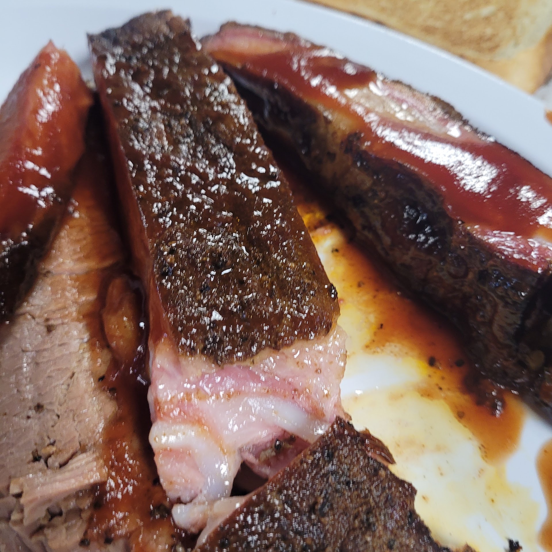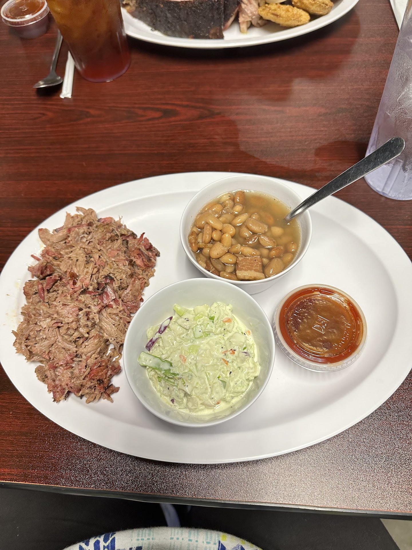 Read moreStopped in on a Saturday about an hour before closing and there was still a good-sized crowd finishing up their meals. The dining room is spacious and was very clean. I ordered the one-meat sandwich plate (minus bun, specifically requested) with chopped brisket, pinto beans & Cole slaw. The brisket was succulent and cooked to perfection-didn’t even need sauce, which I ordered on the side (and it was delicious!). The Cole slaw and beans tasted very fresh and made from scratch (which our server confirmed when I asked). Our server was awesome-very attentive without hovering, answered all our questions about the different meats, made some excellent recommendations, which we thought were spot on. I would definitely recommend this restaurant to anyone looking...