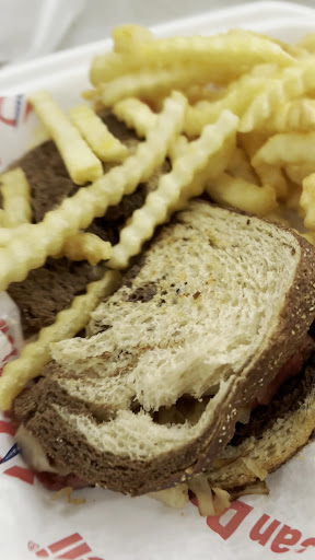 I ordered a Reuben sandwich with the thousand island on the side. This is how Sandwich came looks nothing like the picture in the store or online. there was more sauerkraut on it than there was meat. they did not put the cheese on the sandwich at all. The bread was not toasted. They also gave me one of the end pieces as one of my slices of bread. It seems like the bread was old because it was falling apart. Would not recommend this ice to anyone every time I have gotten a sandwich or anything from this place it has been shit. And you take it back to them and they say oh we cannot do a refund. We can just give you another meal. Why Would you want another mail from the place that you just took food back to? That was...