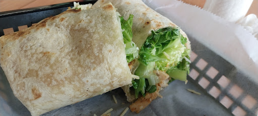 I paid over $15 for a mediocre (at best) Chicken Ceasar Wrap and bottom notch service. A woman was running the cash register and, while she was very busy multi-tasking, was nice, offered recommendations, and was efficient at her job. The praise worthy parts of the experience ended there, unfortunately. I'll admit that I didn't notice the sandwiches were served with a pickle, so it's my own fault I couldn't eat the sad little cold hashbrown I received because it was soaked in pickle juice. The rest is on them. I wasn't a college girl with a crop top on, so I missed out on the above and beyond service I watched some tables receive. They had their food delivered to the table with a smile and asked if there was anything they needed. I got my name screamed across the restaurant, then I wandered around looking for it. I tried several times to get someone's attention but was subsequently ignored. I finally found my food on the other side of the restaurant on top of a counter that was about over my head. The flavor of the chicken was good, but there was no ceasar dressing in my wrap and there wasn't much chicken either. The restaurant itself was very crowded with little space to move around in through high traffic areas, such as the drink machine/trash area.