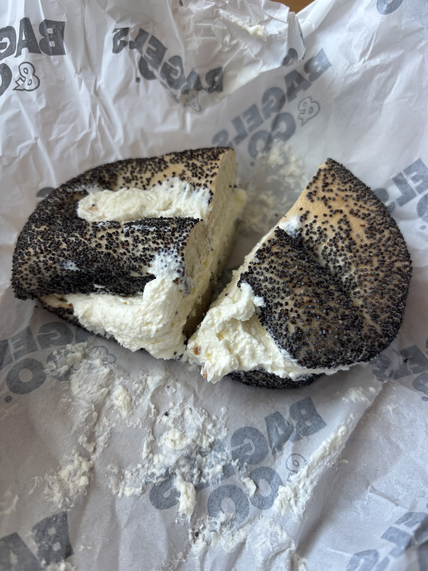 The cream cheese was fine, even though I expected to be overcharged for to-go cream cheese, $5.50 +tax for about 4oz of cream cheese seems like a lot, especially getting gouged for $1.50 to scramble eggs.