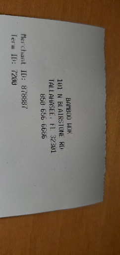 I feel compelled to give a poor review. In my opinion, Bamboo Wok is the absolute worst Chinese food in the city of Tallahassee. The Kung Po Chicken was finely diced breaded, deep fried, not stir fried. It is not supposed to be breaded. The peanuts were not cooked with the food. They simply sprinkled them on the top. Most places put whole dried chili peppers in, they used graded. It neither smelled nor tasted like Kung Po Chicken. The rice was simply colored. It didn't look or taste like fried rice. They obviously avoided the correct cooking process and took short cuts in the preparation of this food.